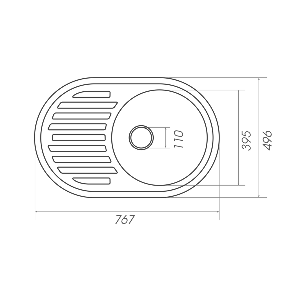 Розміри мийки – 767х496х190 мм, вага – 9,1 кг, сифон – євросифон з широкою горловиною, 110 мм.