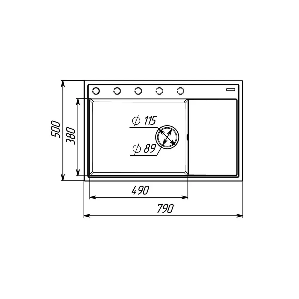 Ця мийка має розміри, які роблять її ідеальним вибором для різних кухонь. З розмірами 790х500х200мм, вона легко впишеться навіть у невеликі простори, забезпечуючи високий рівень зручності та функціональності.Розмір чаші 490x380x200мм.