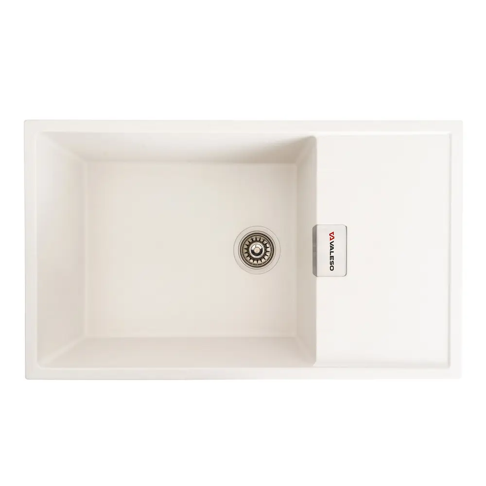 Гранітна мийка для кухні 8650 DIAMOND українського бренду VALESO - це стильна, врізна, прямокутна мийка, яка своїм виглядом чудово доповнить дизайн вашої кухні. Мийка на 80% складається з кварцу та на 20% з надзвичайно твердої акрилової смоли, завдяки чому невибаглива у догляді, а також має великий запас міцності. Розміри чаші, 545х450х185 мм, роблять її дуже місткою та зручною у використанні. Мийка має матову фактуру і приємний для ока колір що дозволяє їй легко вписатися в інтер'єр кухні. Мийка виготовлена в Україні із якісної німецької сировини за технологією Solid Surface з дотриманням усіх необхідних стандартів.
