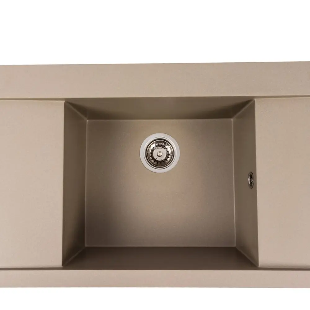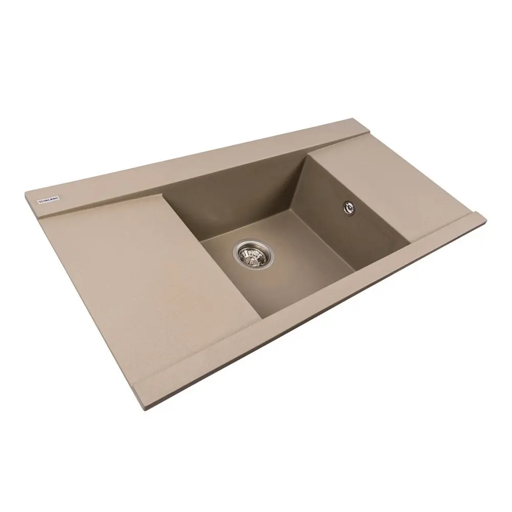 Ця мийка має одну велику чашу, що дозволяє вам зручно виконувати різні кулінарні завдання, від миття посуду до підготовки інгредієнтів. Присутність крила з обох боків - як з правого, так і з лівого, додає додаткової зручності та практичності при роботі на кухні.