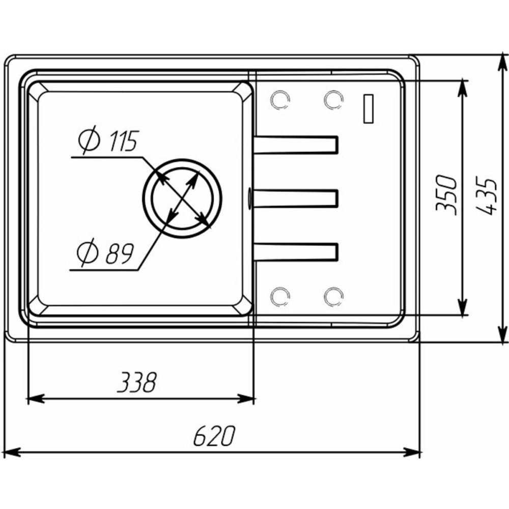 Розміри мийки – 620х430х190 мм, вага – 9 кг, сифон – євросифон з широкою горловиною, 110 мм.