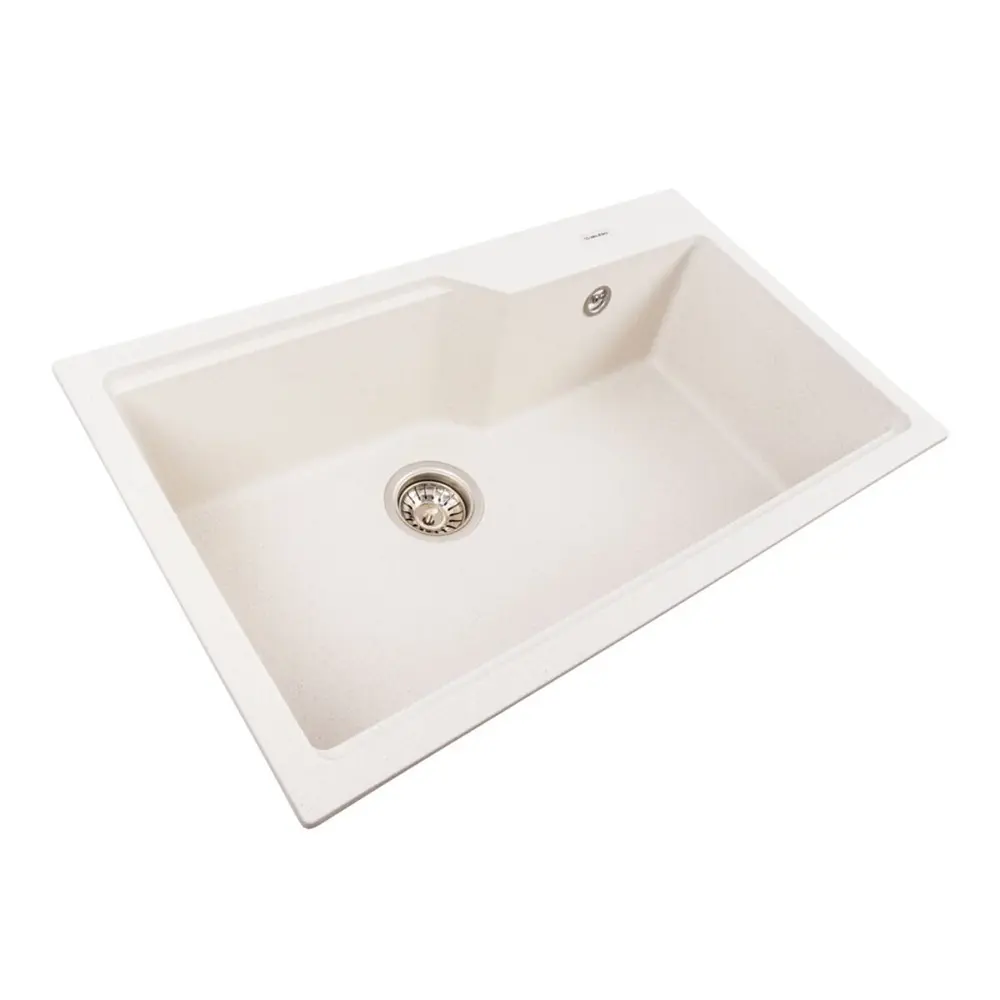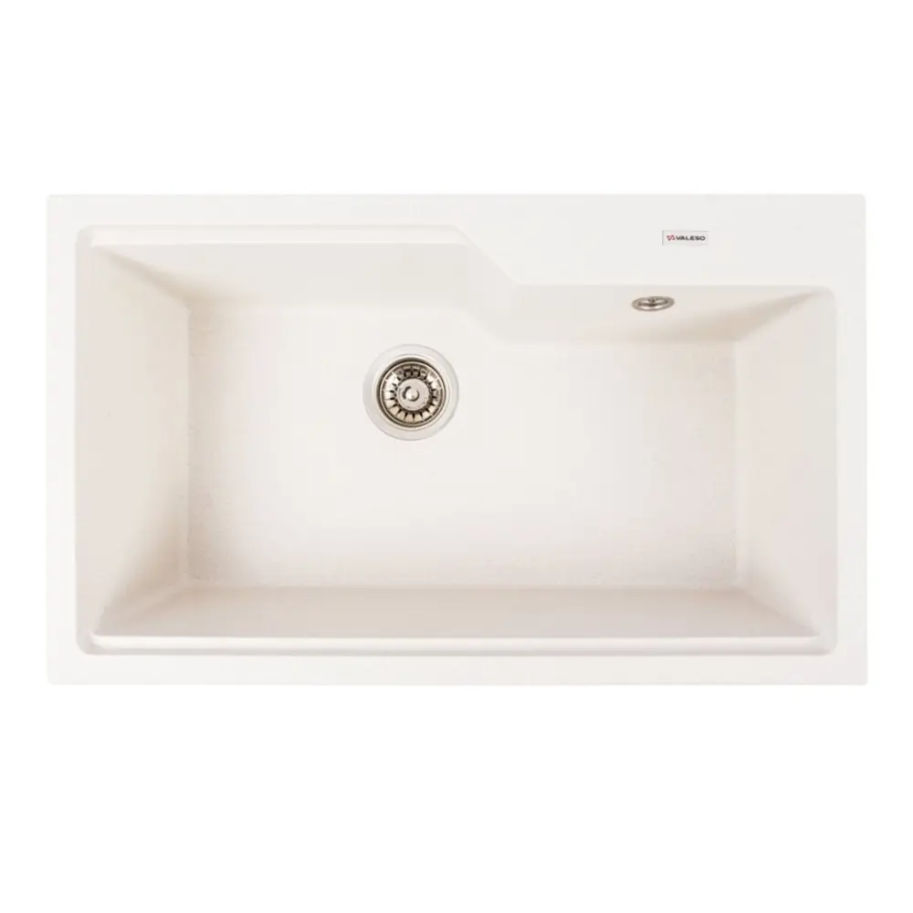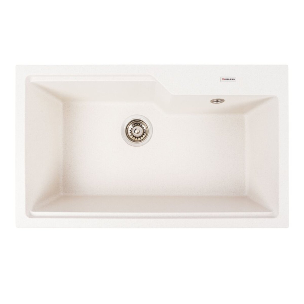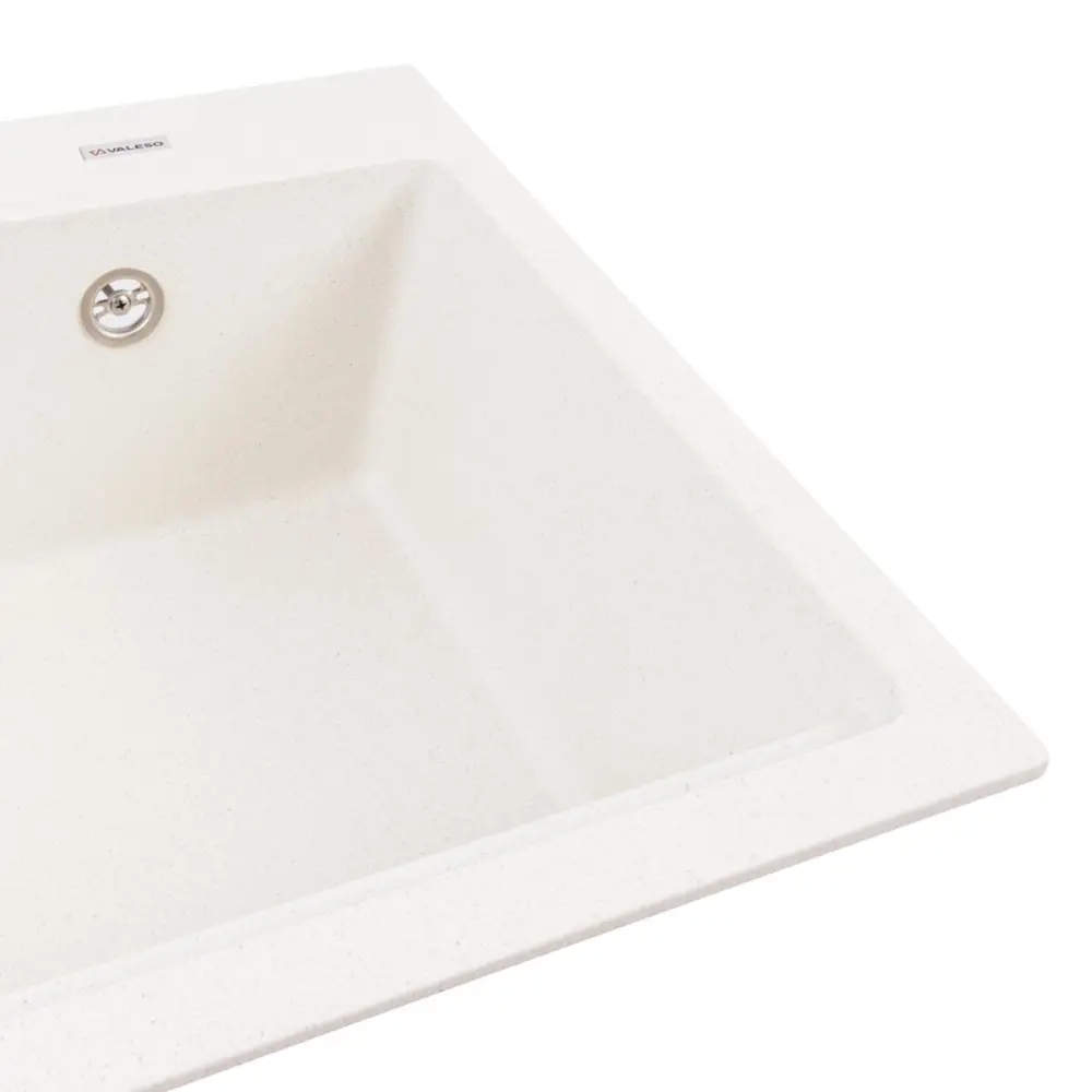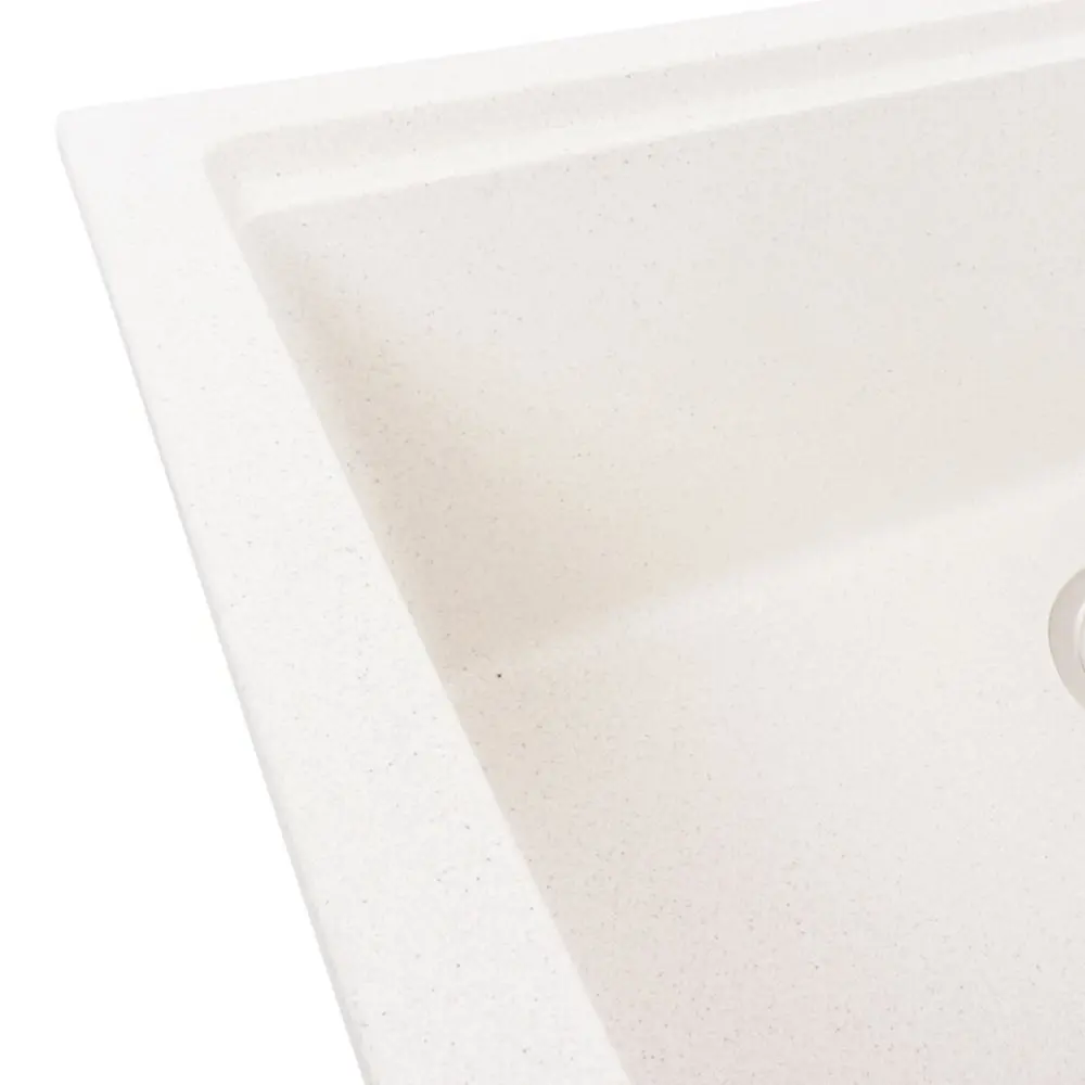 Гранітна мийка для кухні 7545 NIKA Біла в крапку українського бренду VALESO - це стильна, врізна, прямокутна мийка, яка своїм виглядом чудово доповнить дизайн вашої кухні. Мийка на 80% складається з кварцу та на 20% з надзвичайно твердої акрилової смоли, завдяки чому невибаглива у догляді, а також має великий запас міцності.