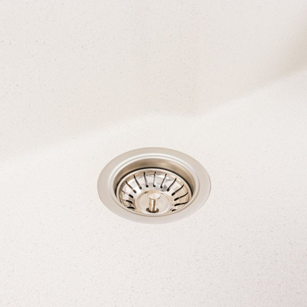 Мийка має матову фактуру і приємний для ока колір - Білий в крапку, що дозволяє їй легко вписатися в інтер'єр кухні.