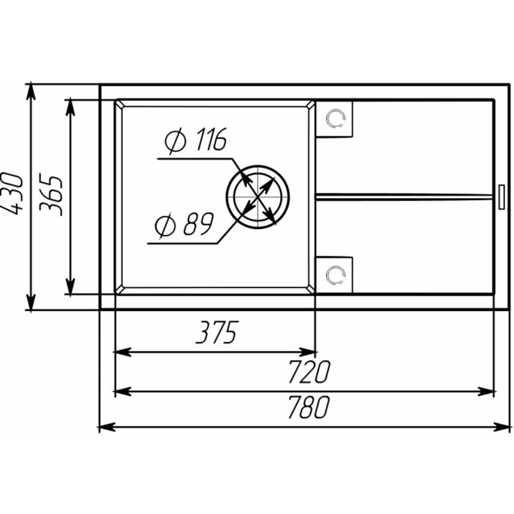 Розмір мийки 780х435х200мм робить її ідеальною для будь-якої кухні, а розмір чаші 343х370х200мм забезпечить комфорт при використанні. Мийка має врізний дизайн для бездоганного поєднання з вашою стільницею, надаючи вашій кухні стильність та оригінальність.
