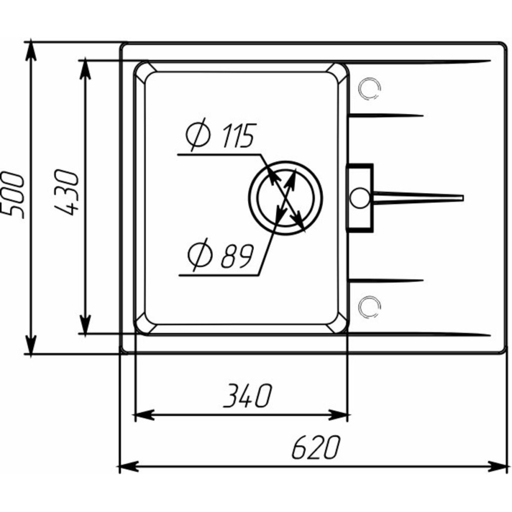 Завдяки своїм компактним розмірам - довжина 620 мм і ширина 500 мм,глибина 200мм- ця мийка ідеально підходить для невеликих кухонь, де кожен дюйм простору цінний. Квадратна форма додає сучасності та гармонію у дизайні.Розмір чаші 342x435x200мм.