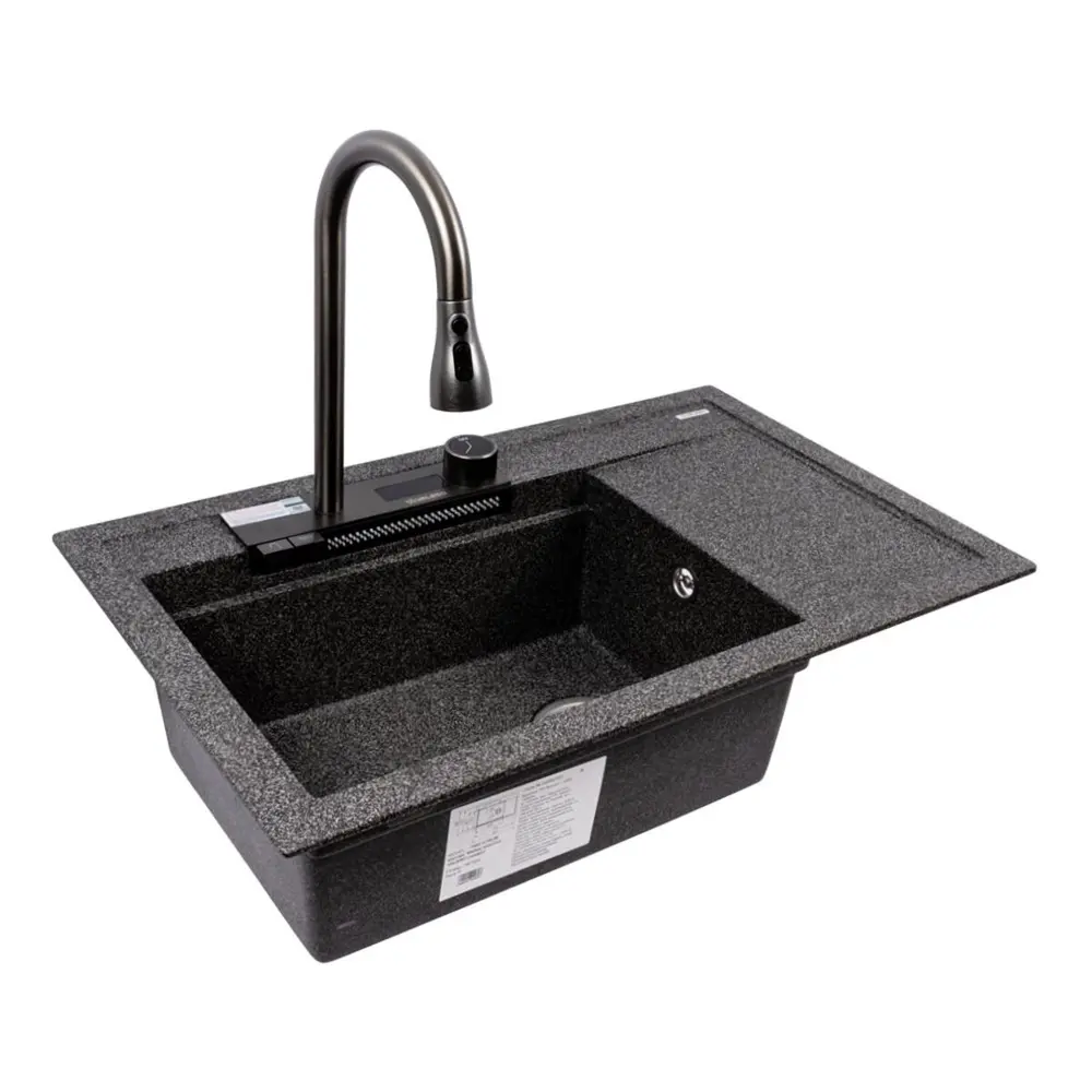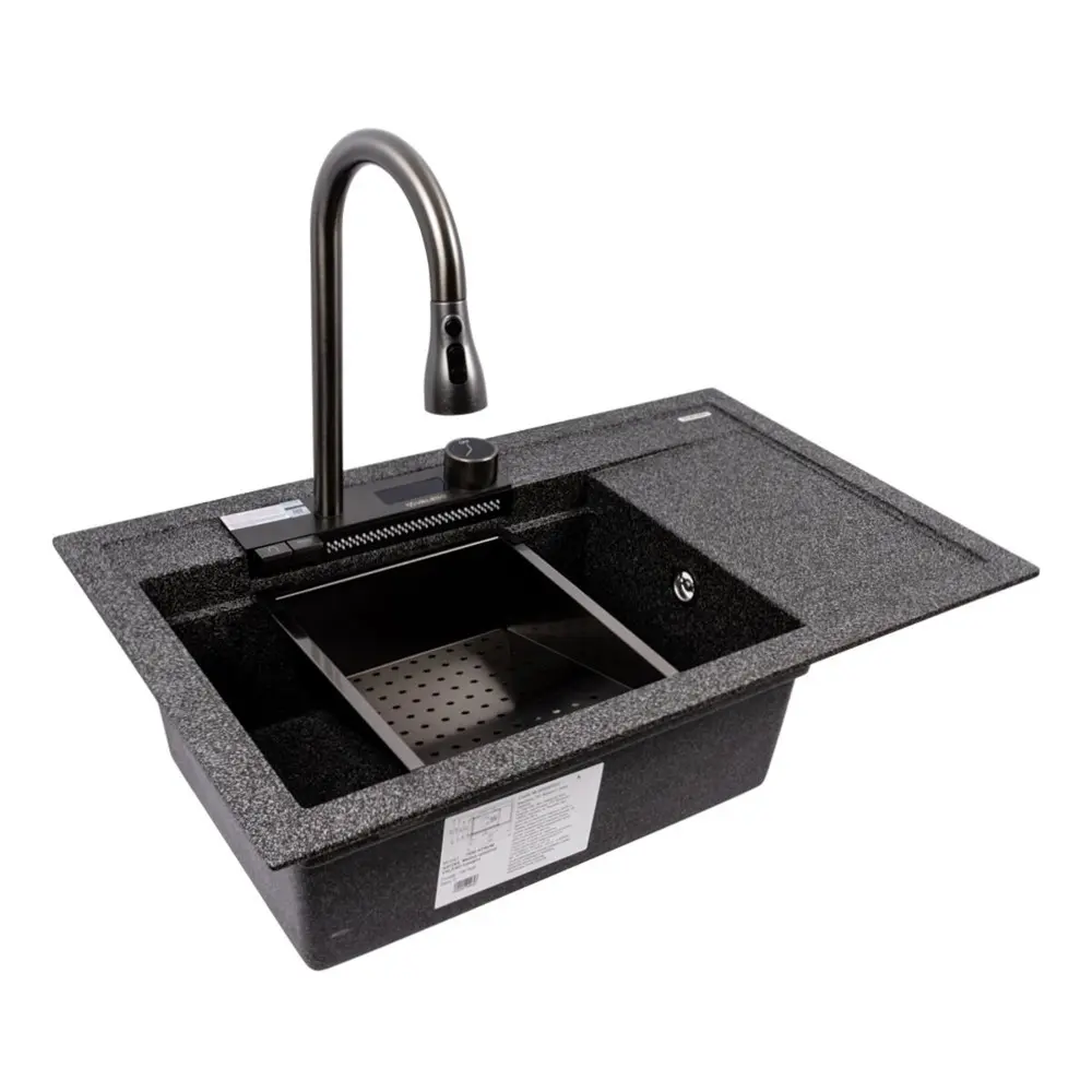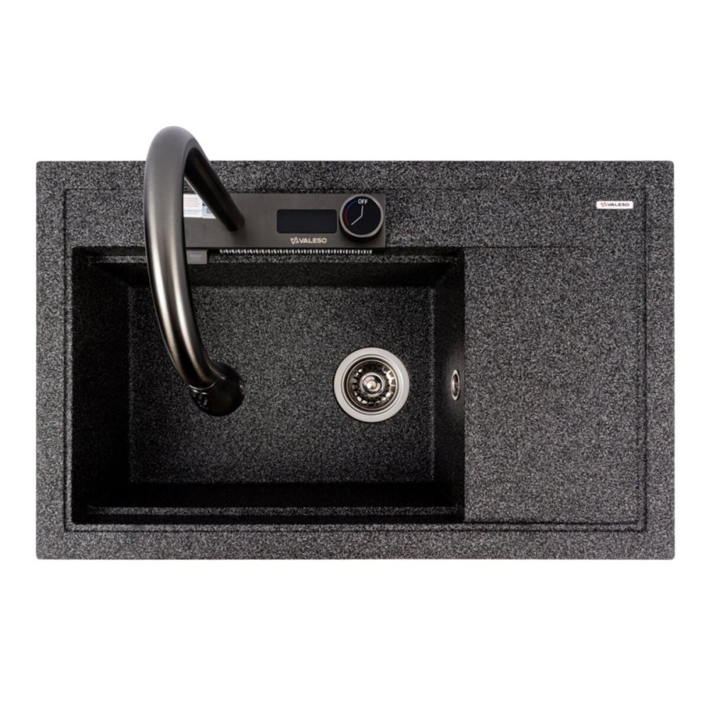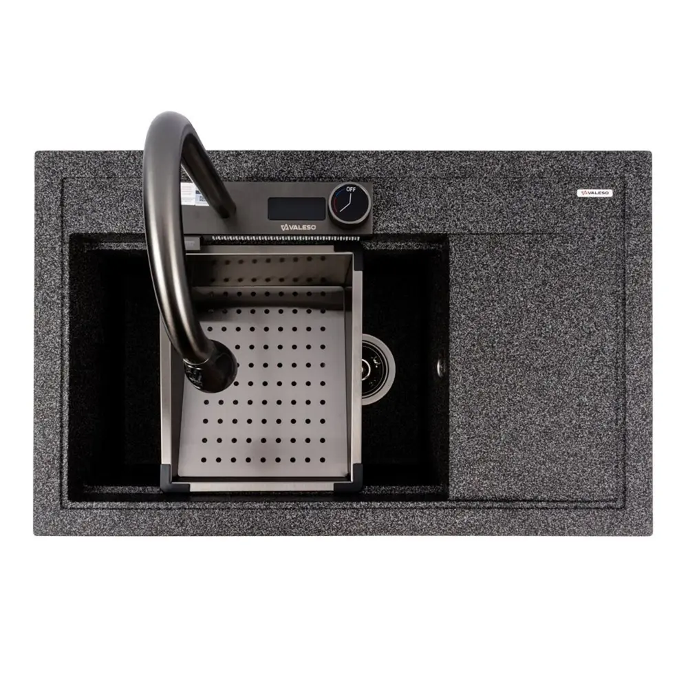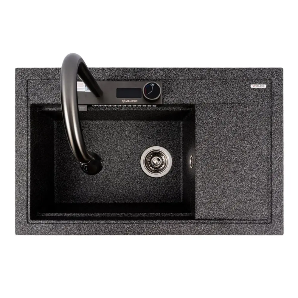 Гранітна мийка VALESO 7950 ATRUM у кольорі графіт — це сучасне поєднання стилю, функціональності та надійності. Виготовлена з високоякісного гранітного композиту, вона відзначається стійкістю до механічних пошкоджень, перепадів температур і впливу побутової хімії. Матова поверхня не лише додає вишуканості, а й легко очищується.