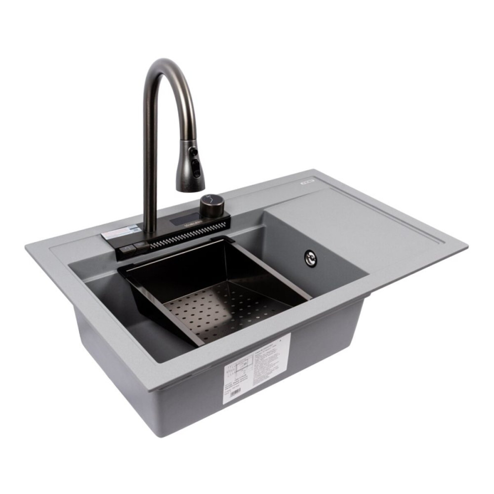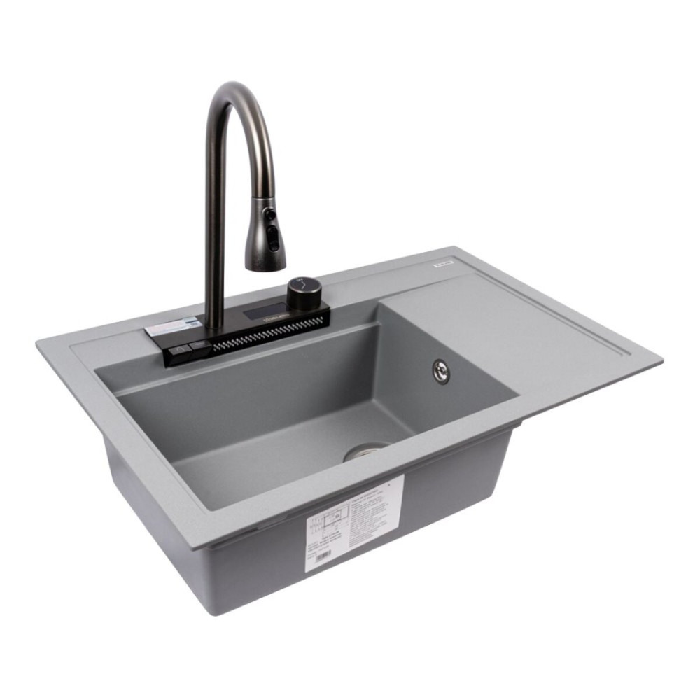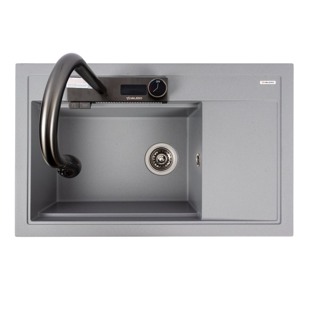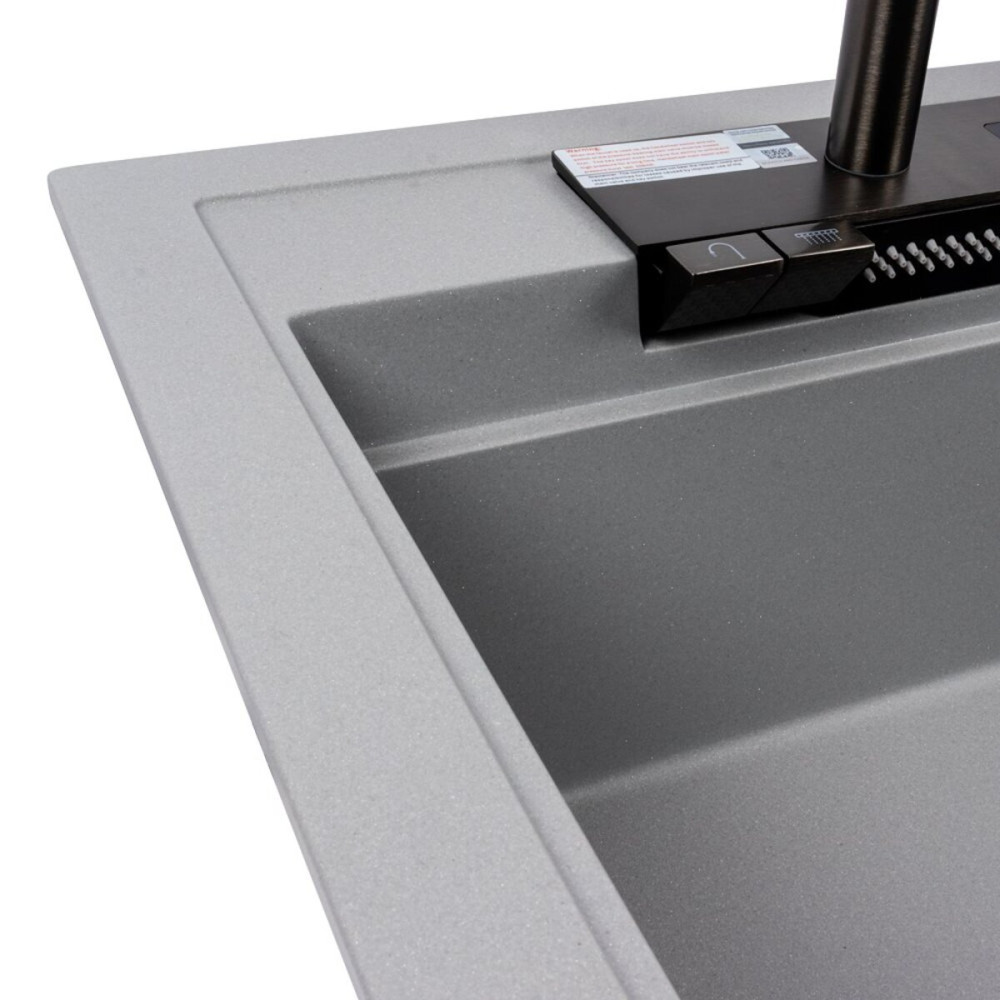Гранітна мийка VALESO 7950 ATRUM у кольорі сірий металік — це сучасне поєднання стилю, функціональності та надійності. Виготовлена з високоякісного гранітного композиту, вона відзначається стійкістю до механічних пошкоджень, перепадів температур і впливу побутової хімії. Матова поверхня не лише додає вишуканості, а й легко очищується.