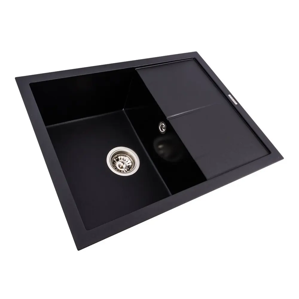 Гранітна мийка VALESO 6550 CRIPTA (чорна) — стильне та міцне рішення для сучасної кухні. Модель виготовлена зі штучного каменю з матовою поверхнею, що додає виробу елегантності та стійкості до щоденного використання.