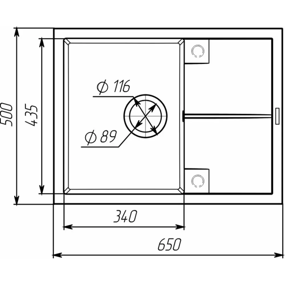 Мийка має оптимальні розміри: загальний розмір становить 650×500×200 мм (ШхГхВ). Її глибока та простора основна чаша розміром 340×435×200 мм (ШхГхВ) робить миття посуду надзвичайно зручним і ефективним, дозволяючи легко справлятися з об'ємними предметами. Ця модель успішно поєднує компактні загальні розміри для економії кухонного простору та достатню місткість чаші для задоволення різноманітних потреб.
