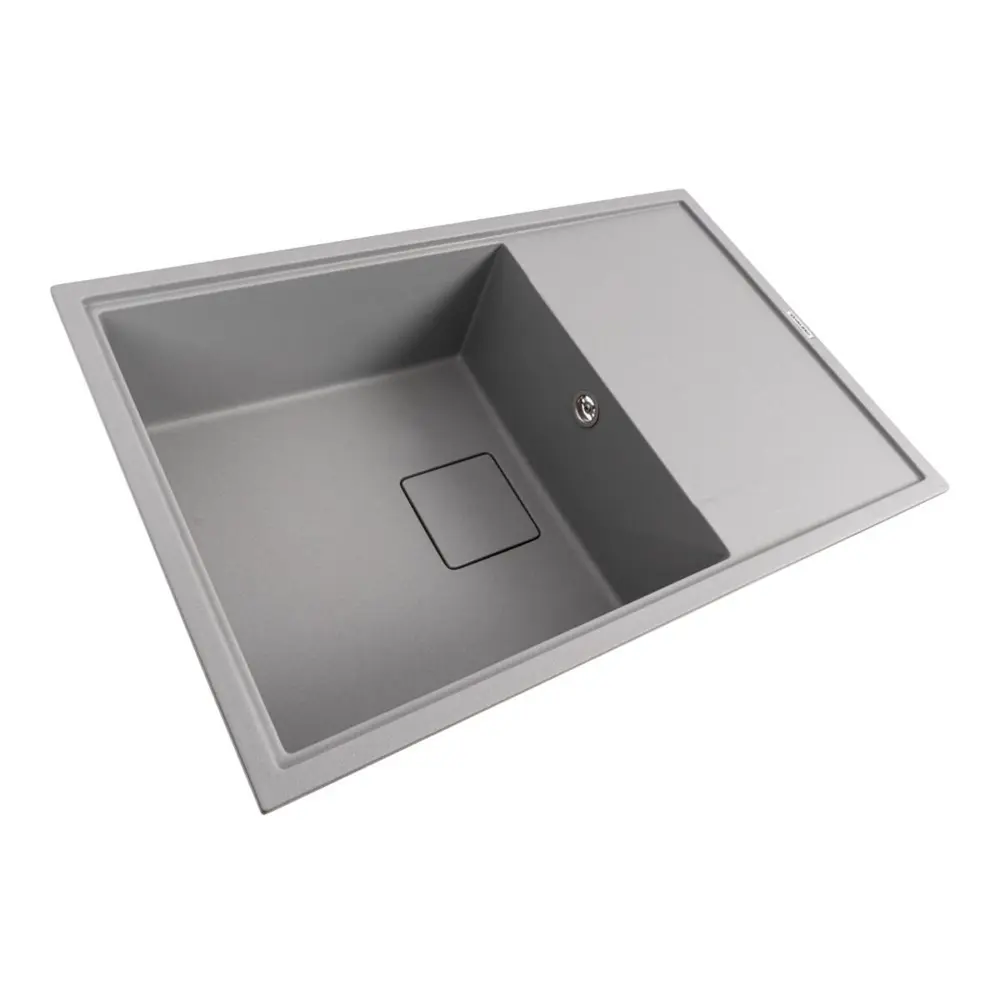 Гранітна кухонна мийка VALESO 7850 GALANS у кольорі сірий металік — це сучасне та функціональне рішення, що стане елегантним доповненням вашої кухні. Її матова поверхня, вишуканий колір та продуманий дизайн з однією основною чашею та сушкою роблять її ідеальною для щоденного використання, поєднуючи естетику та практичність.