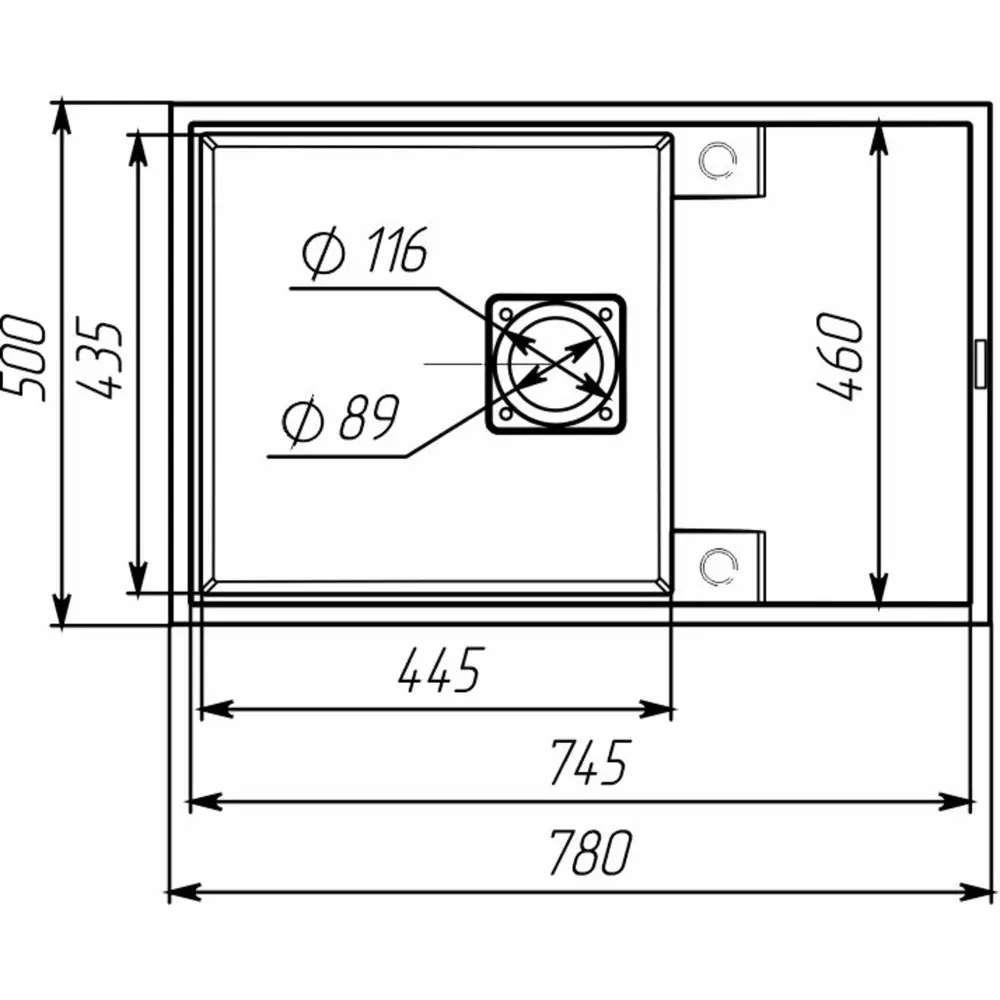 Загальний розмір мийки (ШхГхВ): 780×500×200 мм.