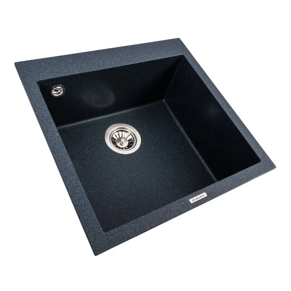5050 GALAX — універсальна гранітна мийка у стильному кольорі антрацит з матовим покриттям. Завдяки класичній квадратній формі розміром 500×500 мм ця модель ідеально підійде для невеликих кухонь або кухонь-студій. Глибока чаша 200 мм (440×440×200 мм) забезпечує комфортне миття великого посуду та каструль.
