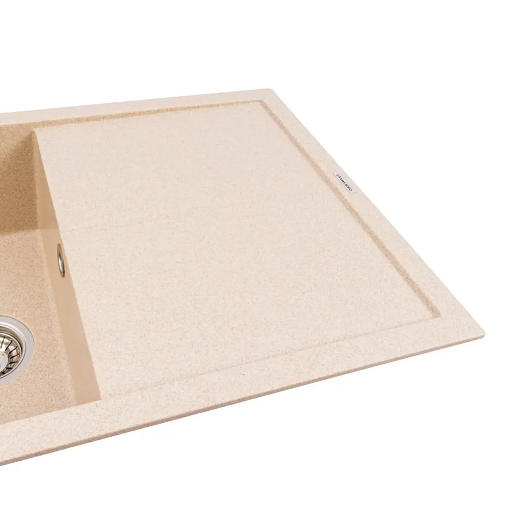 Гранітна матова мийка VALESO MAGNUM 7950 сафарі — ідеальне поєднання стилю, практичності та довговічності. Оснащена однією основною чашею та зручним крилом для сушіння, вона створена для ефективного щоденного використання. Розміри мийки 790×500 мм дозволяють легко інтегрувати її в стандартну кухонну стільницю. Гранітне покриття стійке до подряпин, температурних перепадів і побутової хімії. Вишуканий білий колір з крапками додає легкості та сучасності інтер’єру кухні.