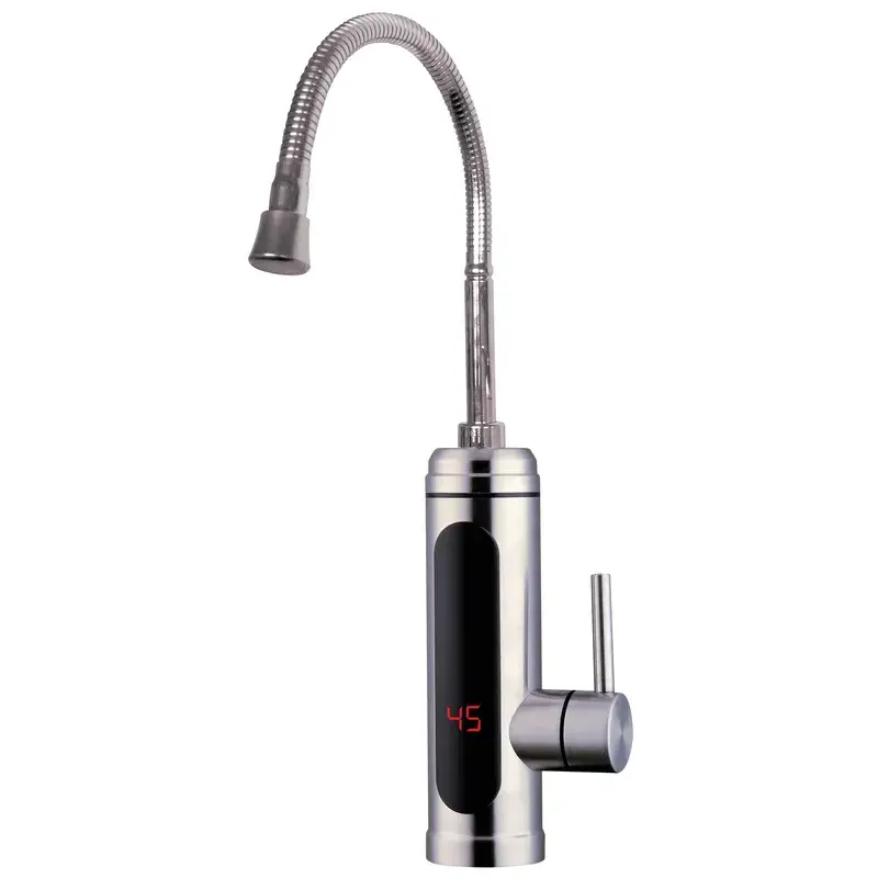 Основна особливість такого крана – вбудований нагрівальний елемент, який швидко підігріває воду до комфортної температури. Підключається пристрій до електромережі, а керування здійснюється за допомогою спеціального важеля чи сенсорного дисплея. Температура регулюється плавно, що дозволяє вибрати оптимальний режим для миття рук, посуду або виконання інших побутових завдань.