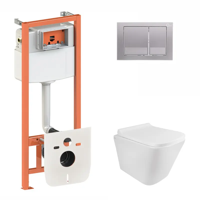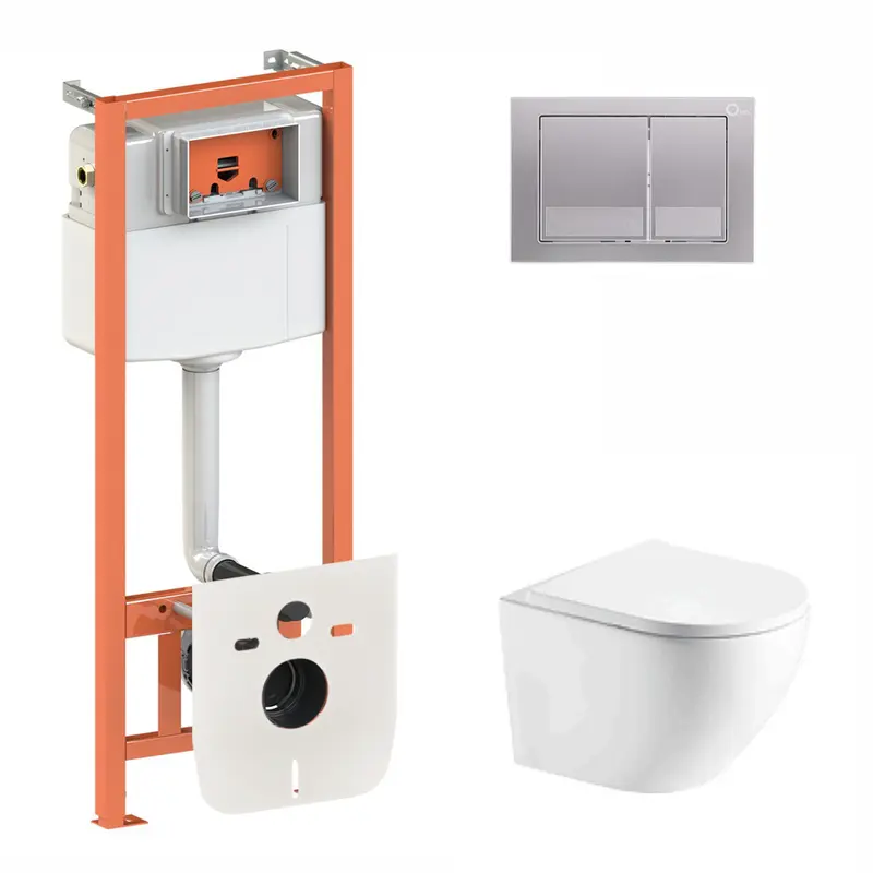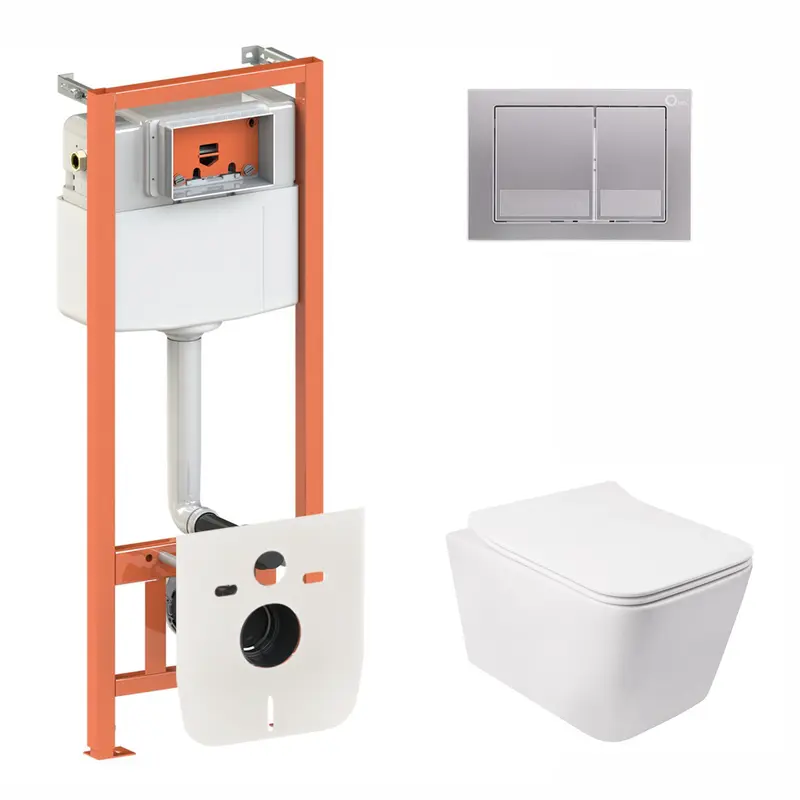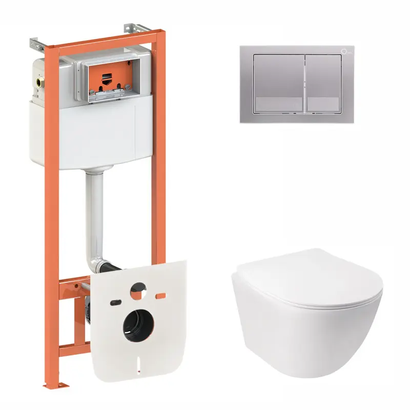 • Готовые комплекты – полные наборы с инсталляцей, унитазом, панелью смыва, сиденьем, а иногда и гигиеническим душем. Это удобно и экономит время на выбор совместимых компонентов.