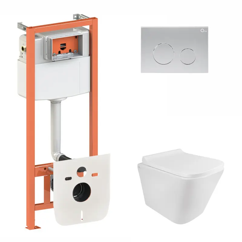 Набор Qtap инсталляция 3 в 1 Nest QT0133M425 с панелью смыва квадратной QT0111M06028CRM + унитаз с сиденьем Tern QT1733052ERW
