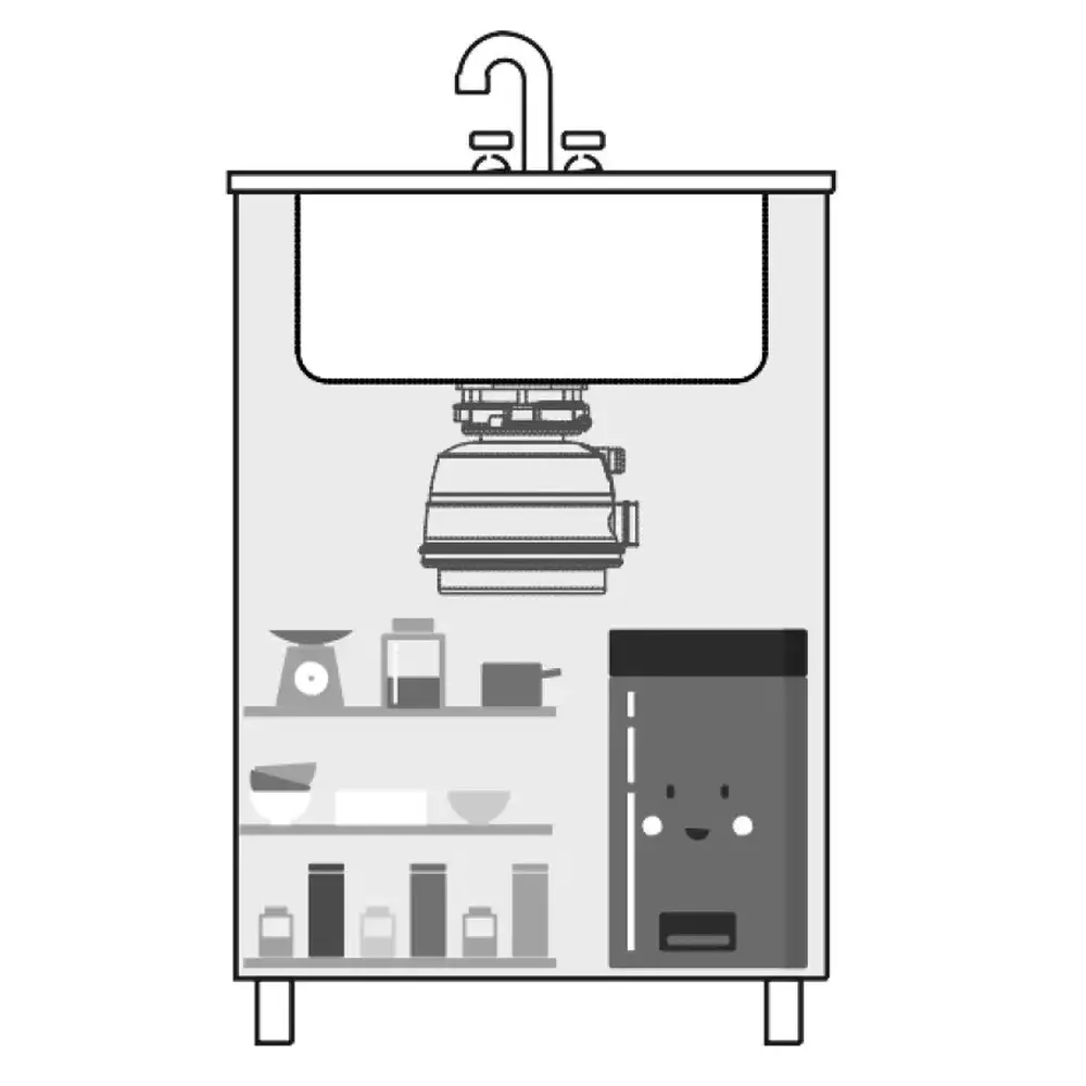 При використанні Status NEXT 200 Compact Wireless у стандартних габаритах підмийного простору вам доступний додатковий об’єм для організації системи зберігання чи встановлення відра для сміття.