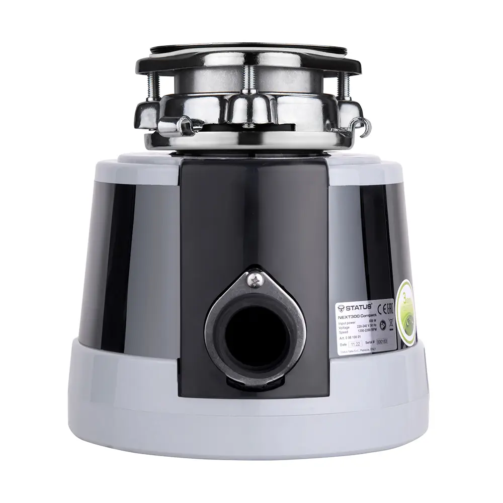 Status NEXT 300 Compact – новий компактний подрібнювач харчових відходів. Застосована комбінація з інноваційного безщіткового BLDC двигуна і виносного блоку управління дозволило знизити висоту прибору до 23 см без втрати продуктивності подрібнення та знизити навантаження на мийку .