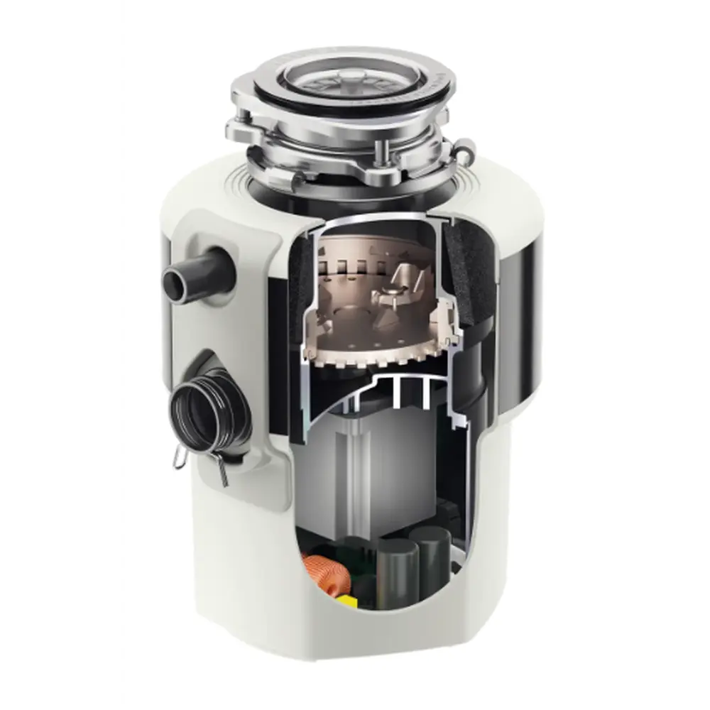 Данная модель наиболее производительна, самая тихая и функциональная из линейки, справляется со всеми видами пищевых отходов, которые попадают в мойку на домашней кухне.