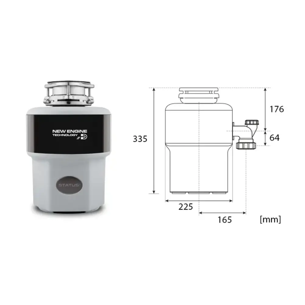 - Мотор. Измельчитель отходов STATUS Premium оснащен мощным индукционным двигателем Status MultiDrive. 75% шума, издаваемого мотором, гасится и не беспокоит жильцов дома. Несмотря на тихую работу, устройство измельчает большой объем продуктов.