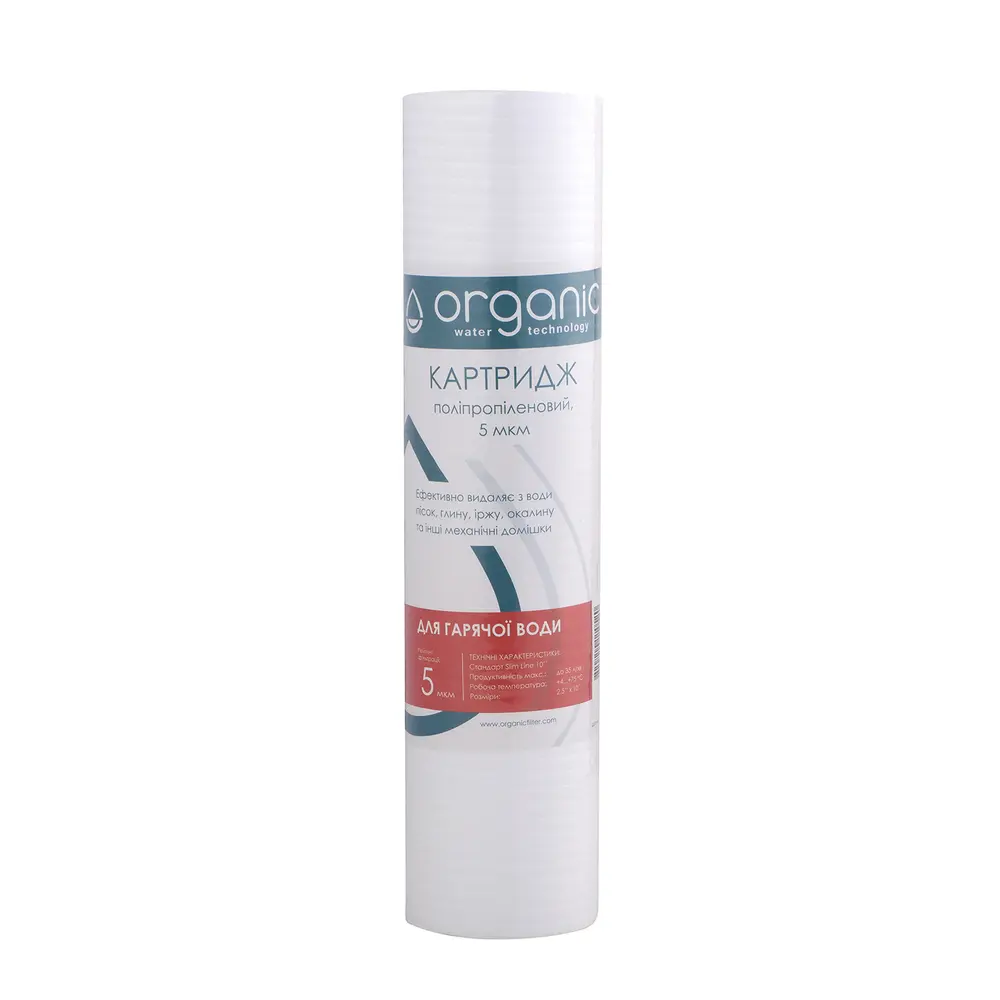 Картридж полипропиленовый Organic DM10PP5Н используется для удаления из горячей воды механических примесей крупнее. В качестве фильтрующего материала применяется вспененный полипропилен.