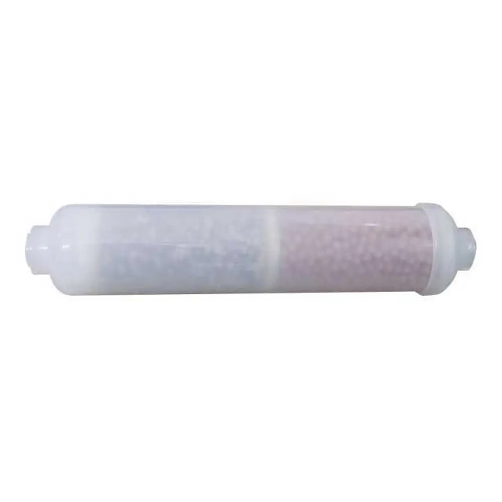 Минерализатор для использования в системах обратного осмоса, устанавливается в качестве шестой степени. Минерализатор одновременно корректирует минеральный состав воды, рН и ее органолептические свойства.