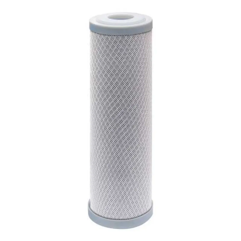 Картриджи активированного угля содержат специальное испеченное угля с исключительной адсорбцией хлора и других летных органических субстанции, которые находятся в воде. Адсорбционно-активная поверхность спеченного угля почти в 2 раза больше гранулированного угля. Благодаря этому увеличивается срок службы картриджей (для воды уже очищенной предварительно) и увеличивается площадь поглощения загрязнений. Угольный картридж имеет полипропиленовую облицовки, которая предотвращает выход пылевидных частиц угля с вклада.