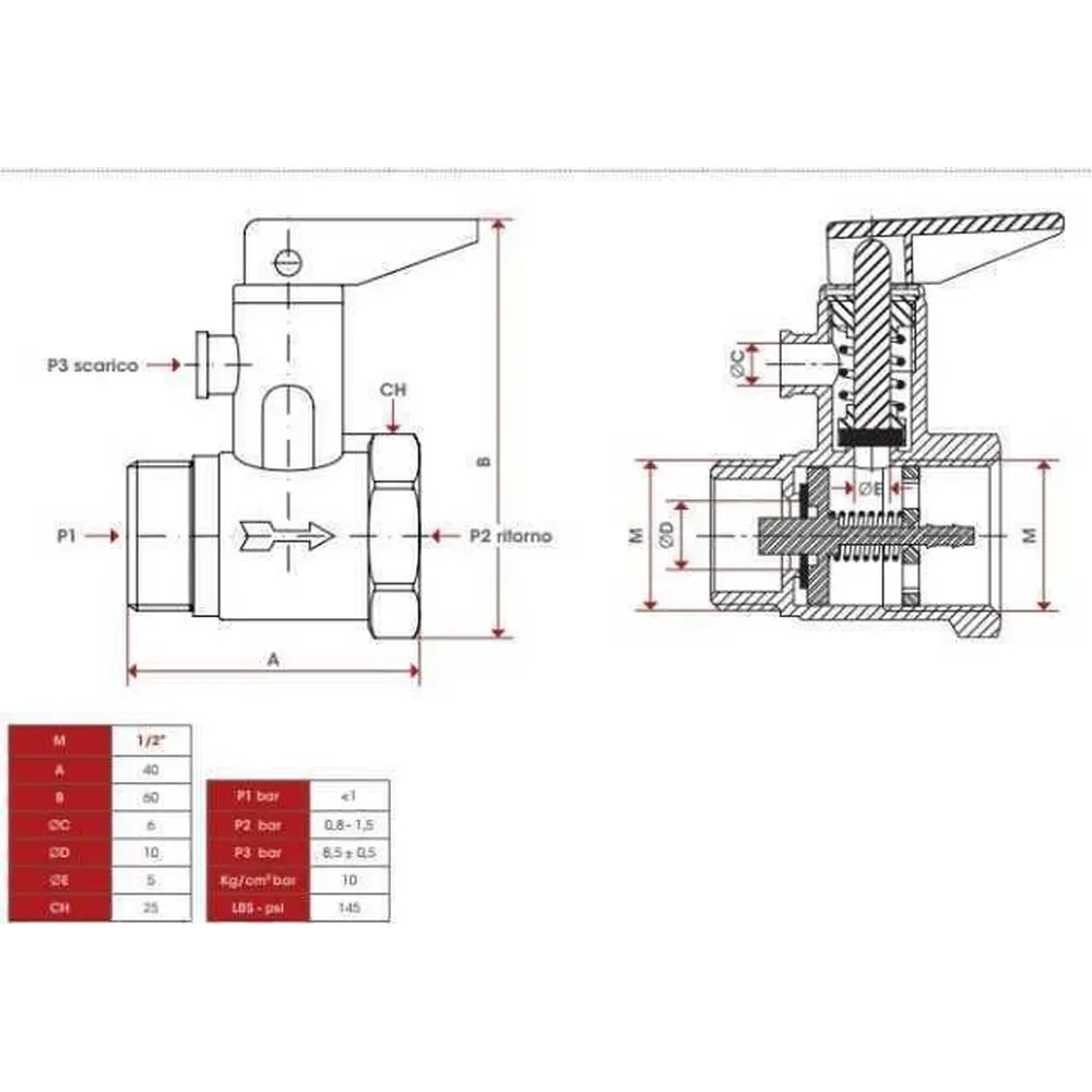 Технічні характеристики підривного клапана: