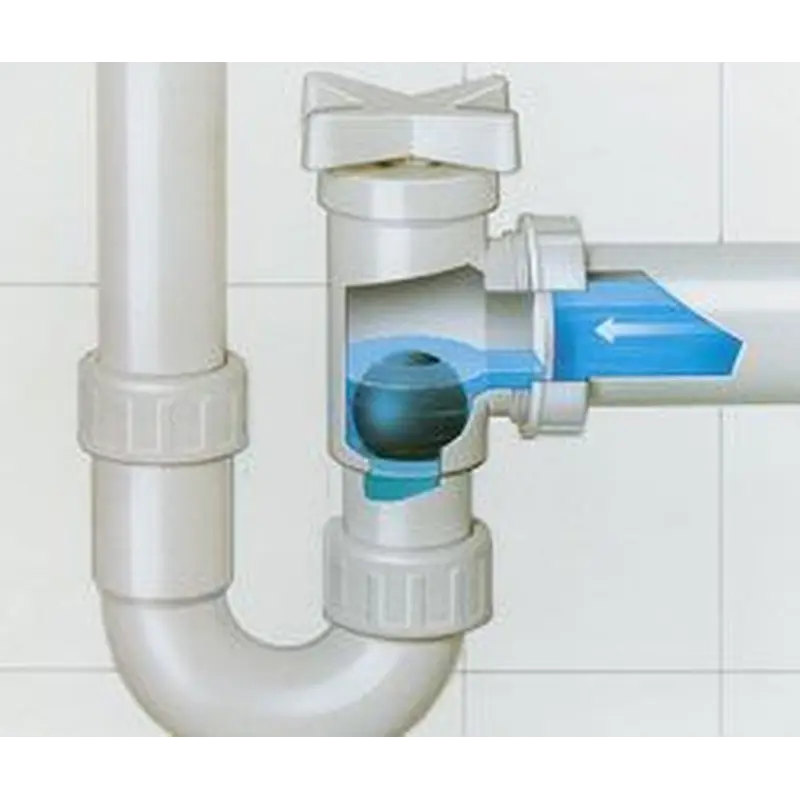 • Аераційні (вакуумні) клапани — вирівнюють тиск в системі та запобігають висмоктуванню води з гідрозатворів.