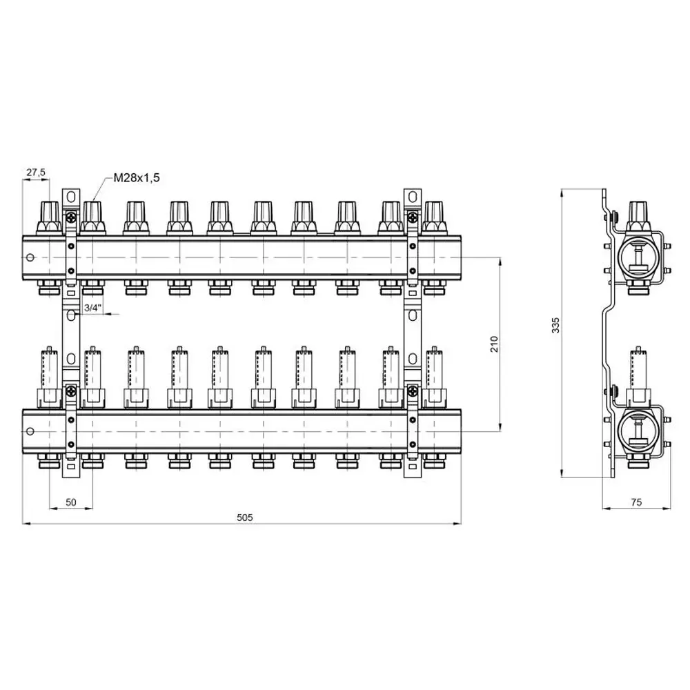 Колектор ICMA Арт. K013 призначений для розподілу теплової енергії в системі тепла підлога. Дана установка застосовується в системах опалення підлоги. Колектор дозволяє рівномірно розподіляти теплоносій. Теплоносій надходить з первинного контуру повинен бути підготовленою температури, що не перевищує 55°C. Даний колектор має 10 виходів.