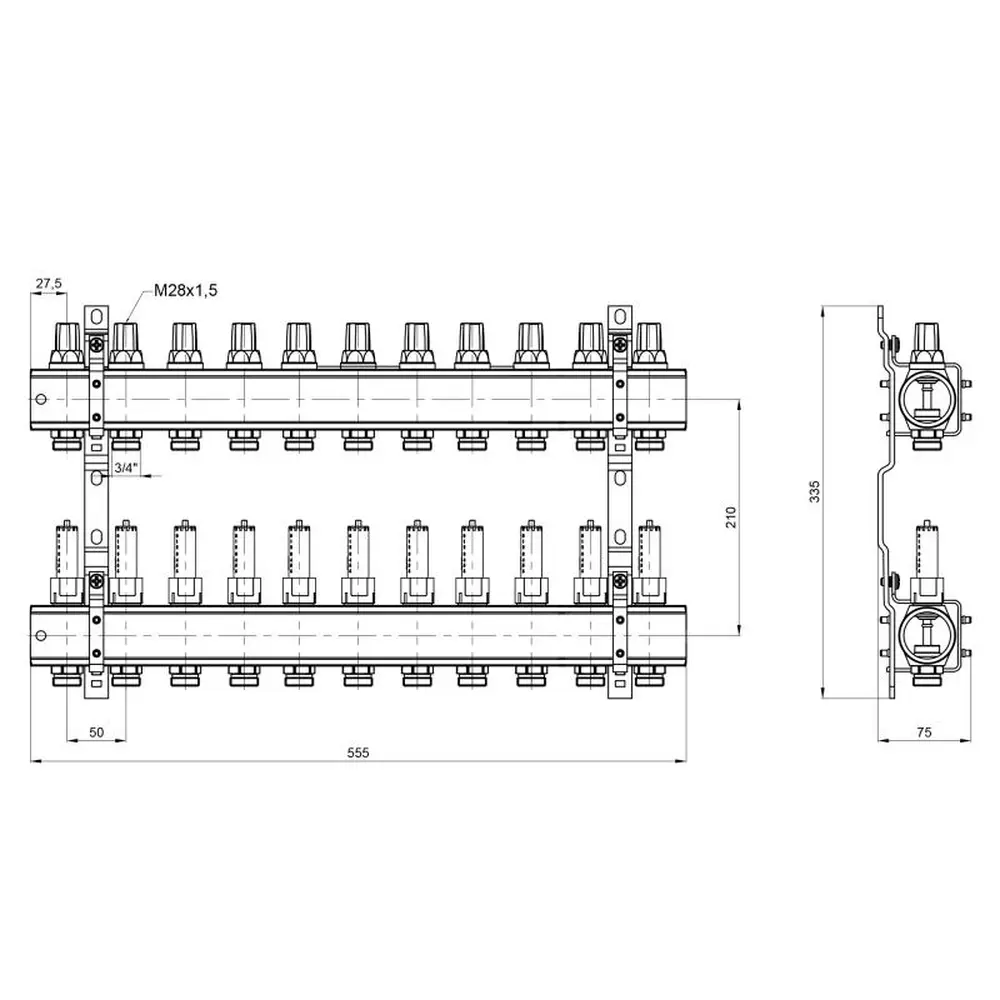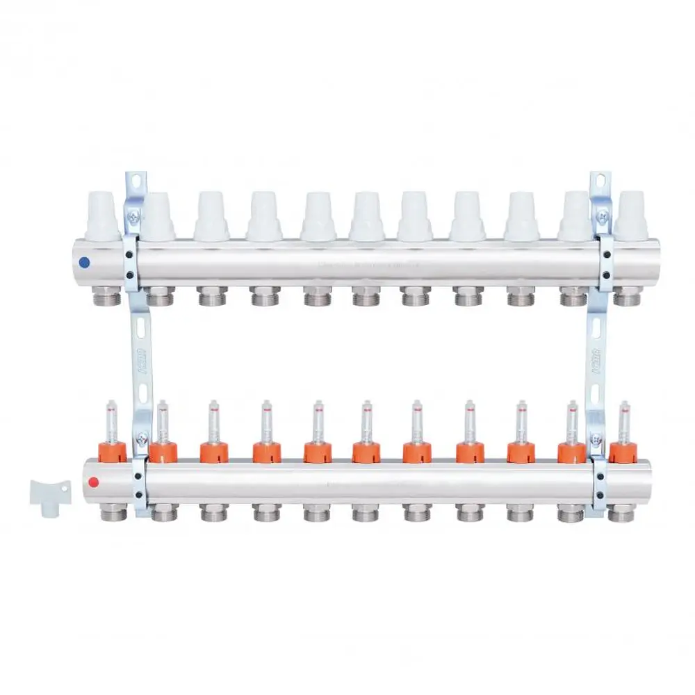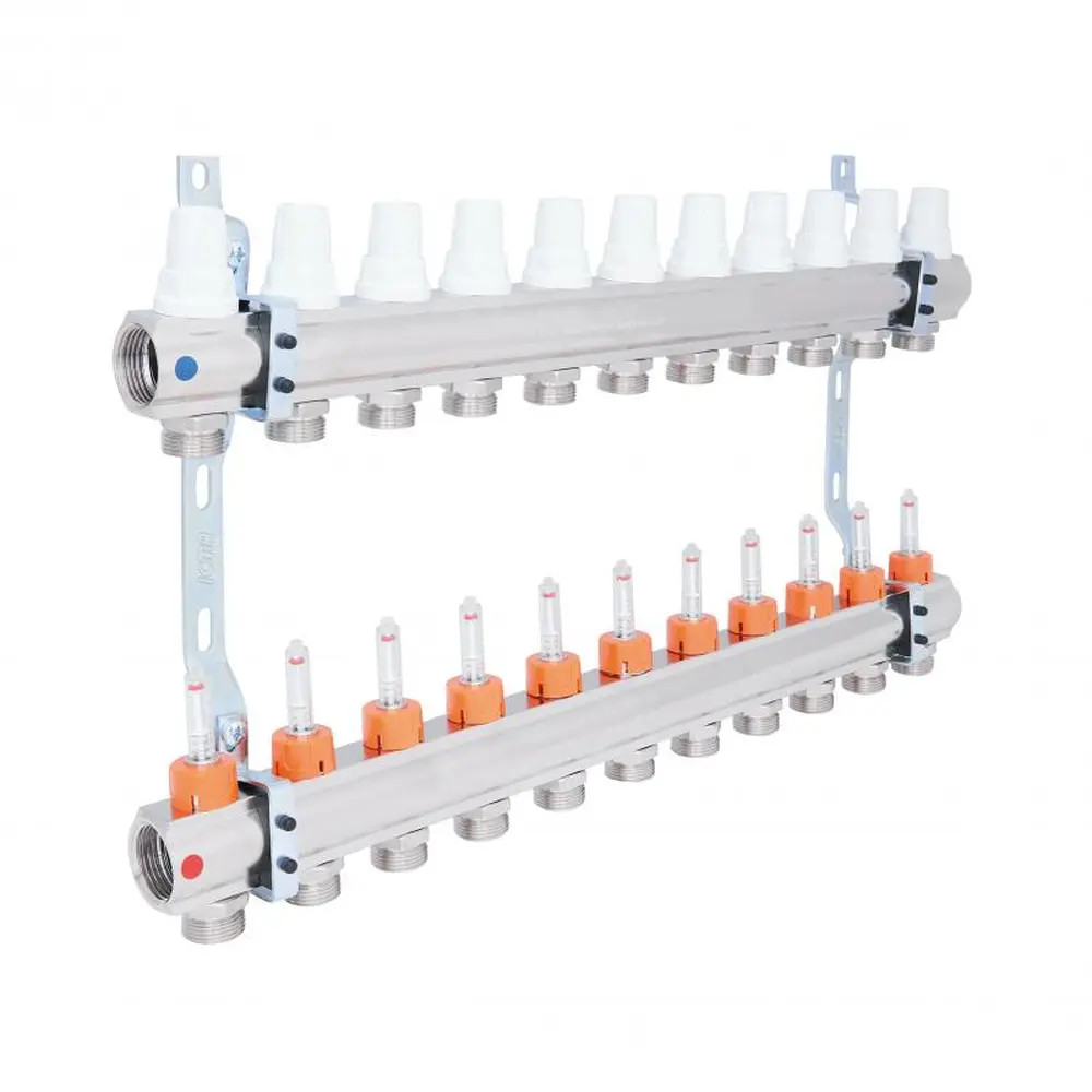Колектор ICMA Арт. K013 призначений для розподілу теплової енергії в системі тепла підлога. Дана установка застосовується в системах опалення підлоги. Колектор дозволяє рівномірно розподіляти теплоносій. Теплоносій надходить з первинного контуру повинен бути підготовленою температури, що не перевищує 55°C. Даний колектор має 11 виходів.