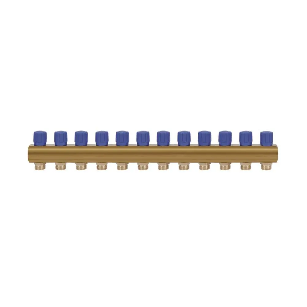 Колектор Icma з регулювальними вентилями 1" 12 виходів №1105 (Blue) призначений для розподілу потоку в системах гарячого та холодного водопостачання. Колектор з ручками управління синього кольору.
