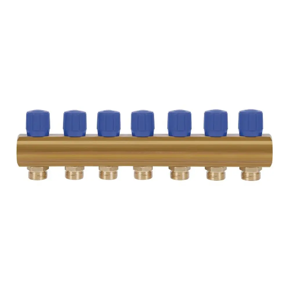 Колектор Icma з регулювальними вентилями 1" 7 виходів №1105 (Blue) призначений для розподілу потоку в системах гарячого та холодного водопостачання. Колектор з ручками керування синього кольору.