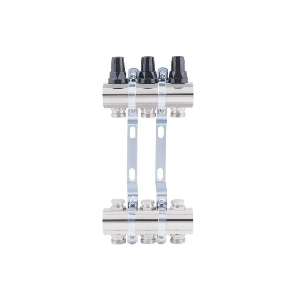 Для під‘єднання петель радиаторного отопления, теплої підлоги призначений колектор SD Forte 1" на 3 виходи. Виріб дозволить регулювати розподіл тепла в контурах і підтримувати бажаний температурний режим в опалювальних приміщеннях. Матеріал виготовлення — латунь. Відстань між осями виходів 5,4 см. Розмір підключення до системи — 1 дюйм. У комплекті є спеціальні кронштейни для кріплення до стіни або в шафі. Ручки регулювання термоклапанів можуть бути замінені на сервоприводи 30х1,5.