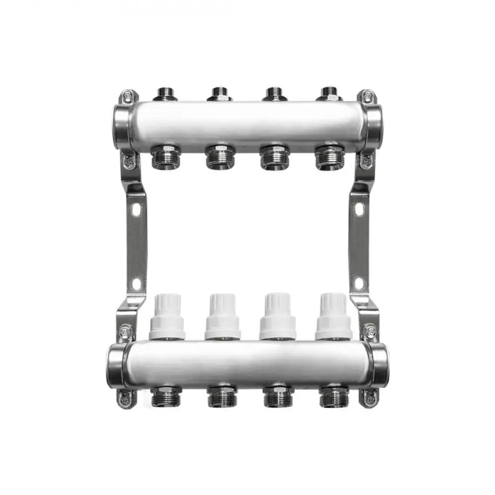 Колектор SD Plus 1" 9 виходів SD0059 з нержавіючої сталі з нікельованим покриттям забезпечений термостатичними та регулювальними клапанами. Різьба під’єднання сервоприводів (не входять до комплектації) 30х1,5. Гребінка дозволить забезпечити розподіл теплоносія по контурах системи «водяна тепла підлога». Відстань між осями виходів — 5 см. Температура робочої рідини на вході в колектор — не вище 95 °C.