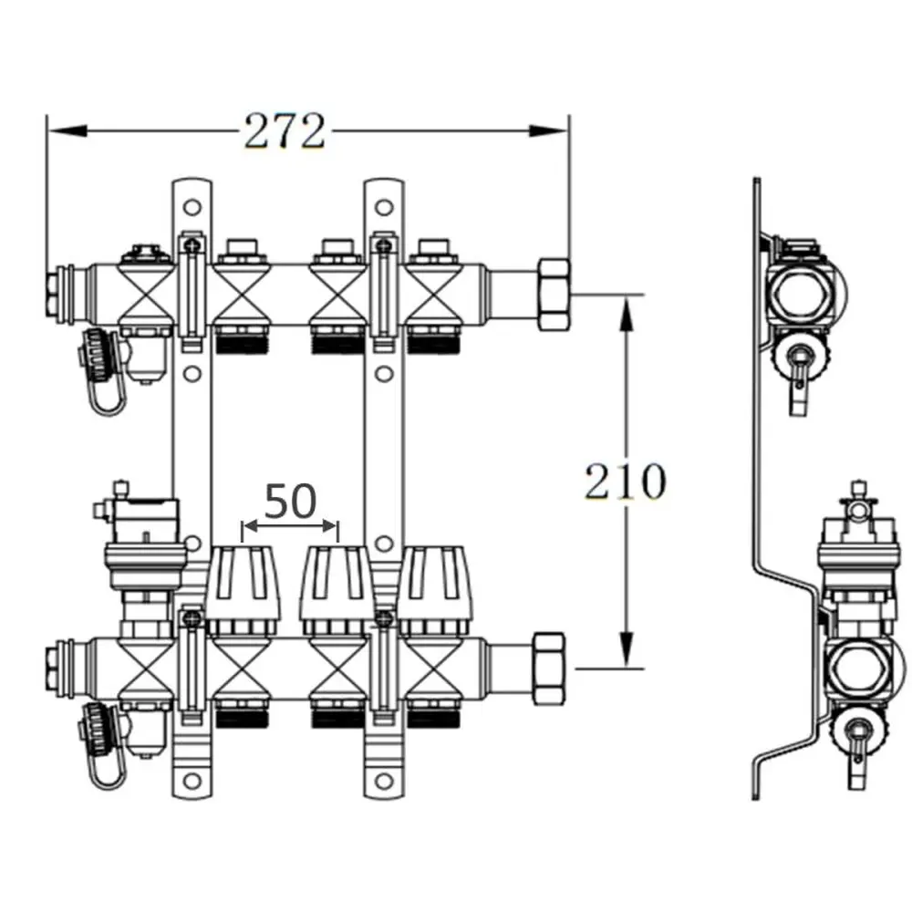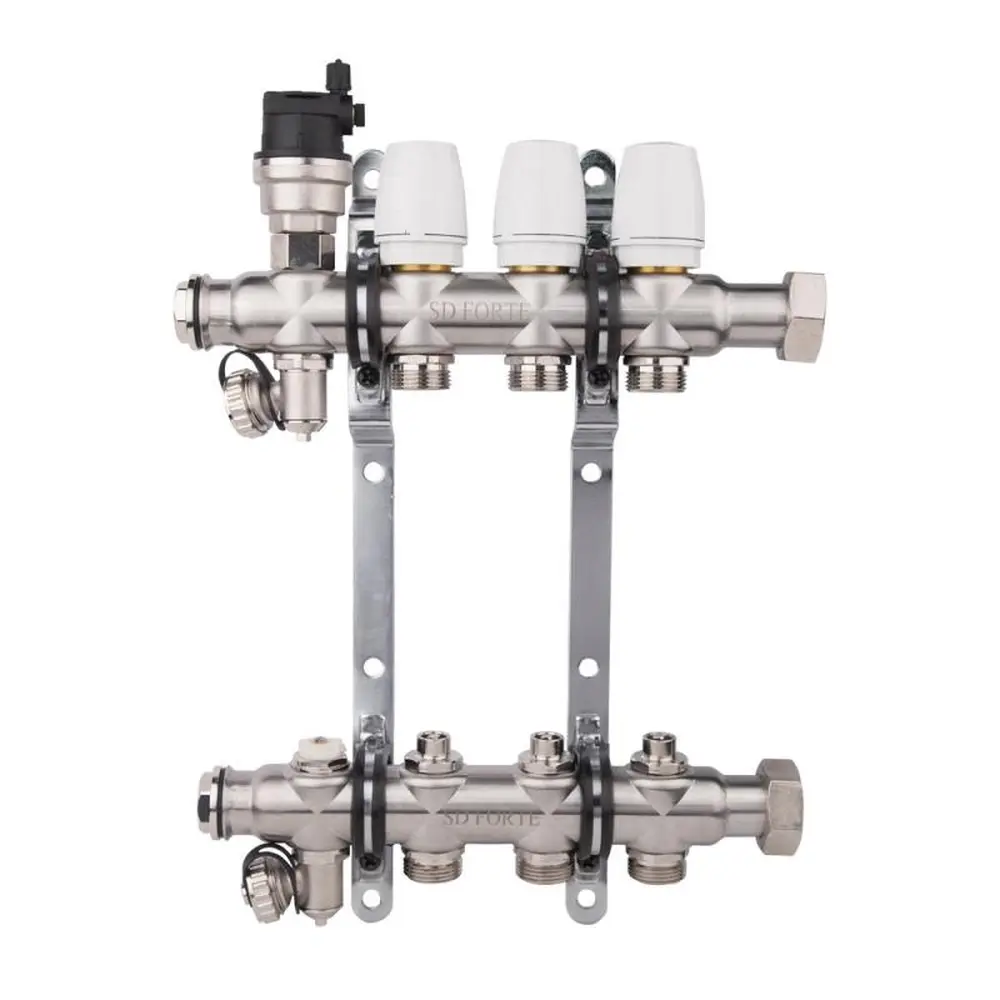 Колектор терморегулюючий SD Forte 1" на 11 виходів виготовлений з високоякісної нержавіючої сталі. Розмір підключення виходів 3/4".