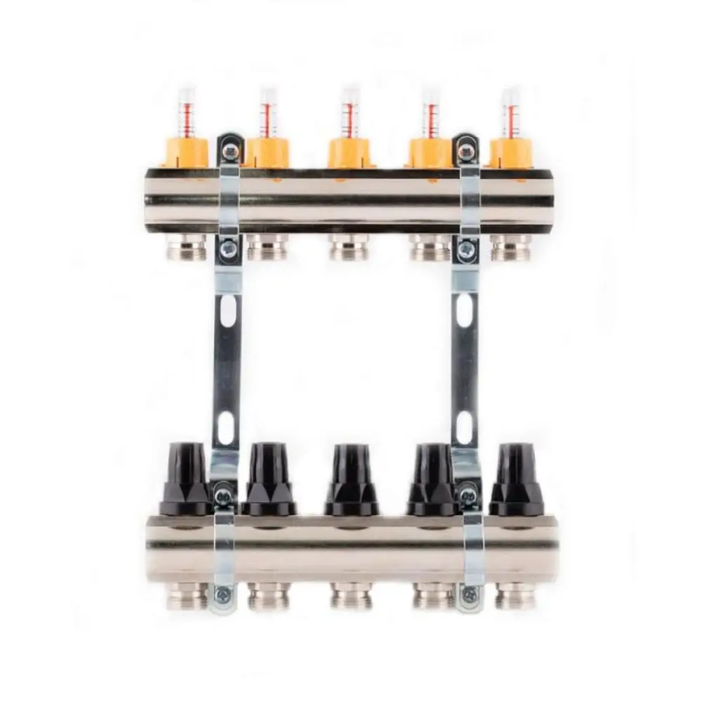Колектор з витратомірами SD Forte 1" на 3 виходи забезпечений зовнішньою різьбою підключення контурів розміром 3/4". Експлуатаційні умови задають максимальну температуру носія на вході — 95 ° С. Виріб складається з двох колекторних балок, одна з яких обладнана витратомірами (пряма лінія), а інша — термостатичними клапанами з ручками управління (зворотний хід). Функція колектора — розподіл тепла в петлях обігріву підлоги. У комплекті кронштейни для кріплення до стіни.