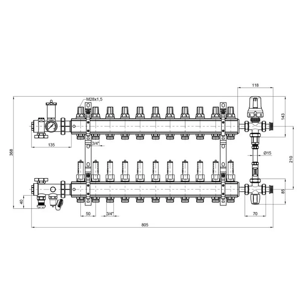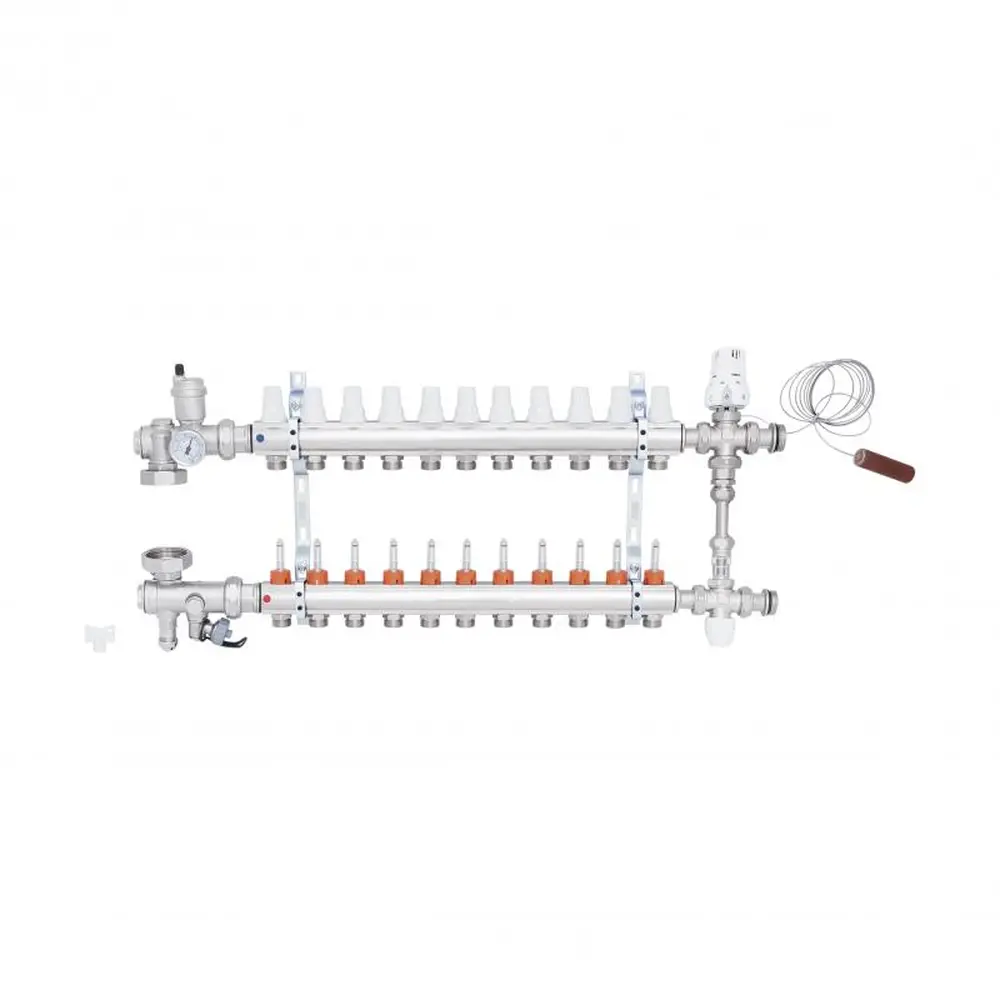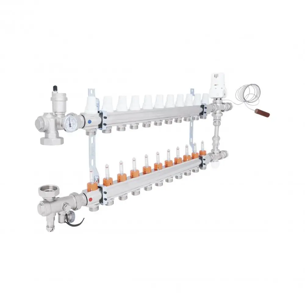 Колекторна група призначена для розподілу теплової енергії в системі "тепла підлога". Дана установка застосовується в системах опалення підлоги, підключених до високотемпературного котла. Колекторна група дозволяє розподіляти первинний теплоносій при високій температурі у вторинному контурі із заданою температурою. Теплоносій надходить з первинного контуру, де температура вища, щоб забезпечити правильну роботу системи теплої підлоги.