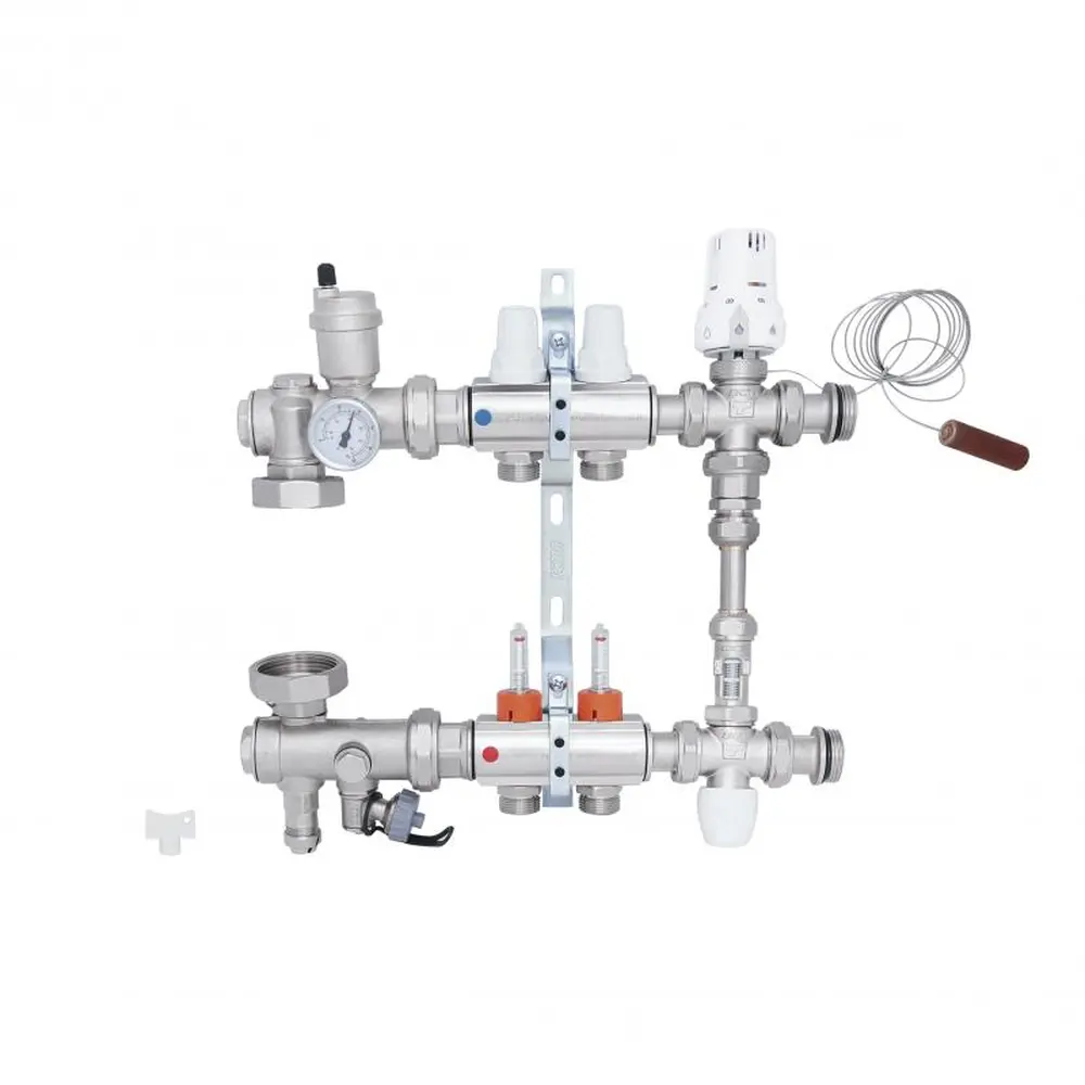 Колекторна група призначена для розподілу теплової енергії в системі "тепла підлога". Дана установка застосовується в системах опалення підлоги, підключених до високотемпературного котла. Колекторна група дозволяє розподіляти первинний теплоносій при високій температурі у вторинному контурі із заданою температурою. Теплоносій надходить з первинного контуру, де температура вища, щоб забезпечити правильну роботу системи теплої підлоги.