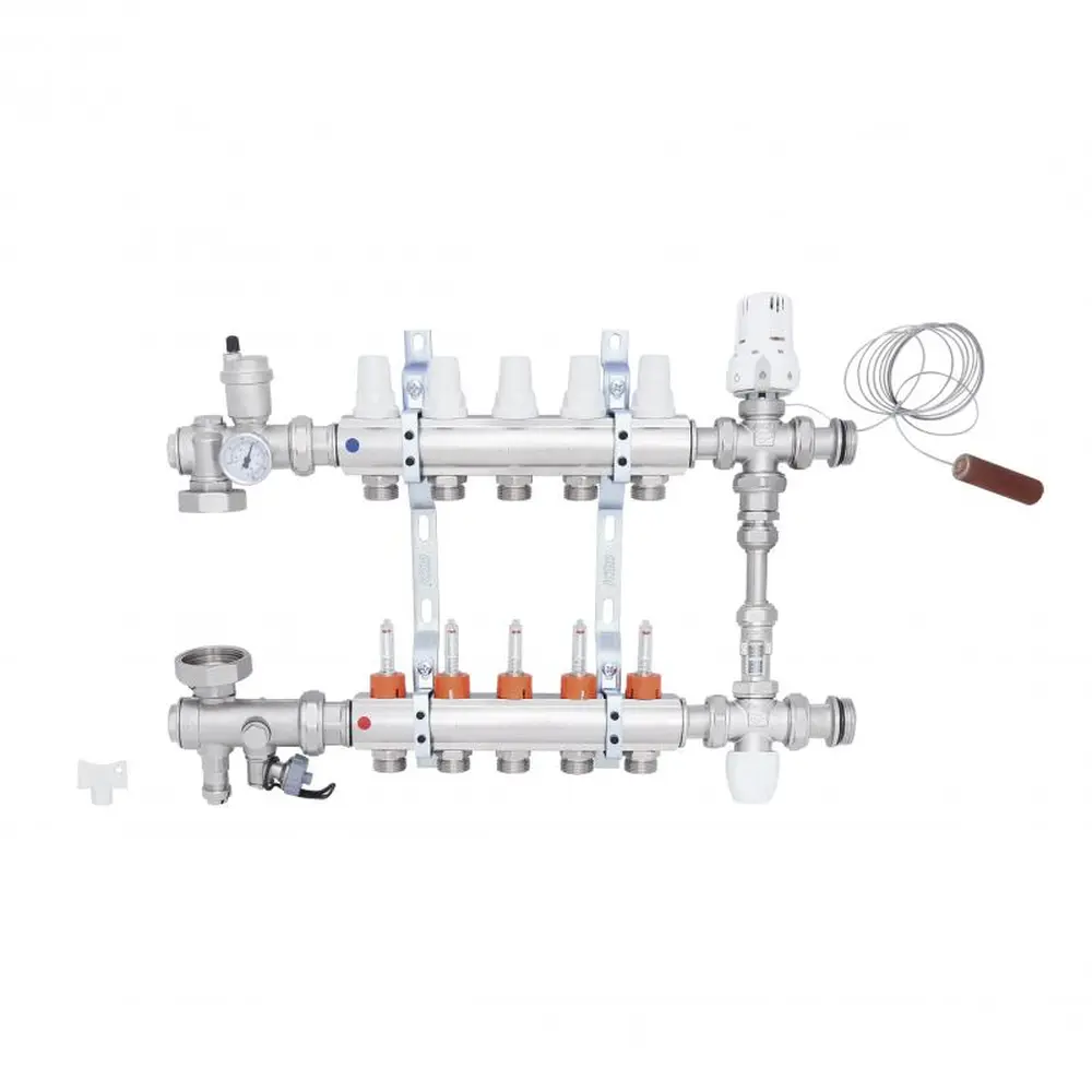 Колекторна група призначена для розподілу теплової енергії в системі "тепла підлога". Дана установка застосовується в системах опалення підлоги, підключених до високотемпературного котла. Колекторна група дозволяє розподіляти первинний теплоносій при високій температурі у вторинному контурі із заданою температурою. Теплоносій надходить з первинного контуру, де температура вища, щоб забезпечити правильну роботу системи теплої підлоги.