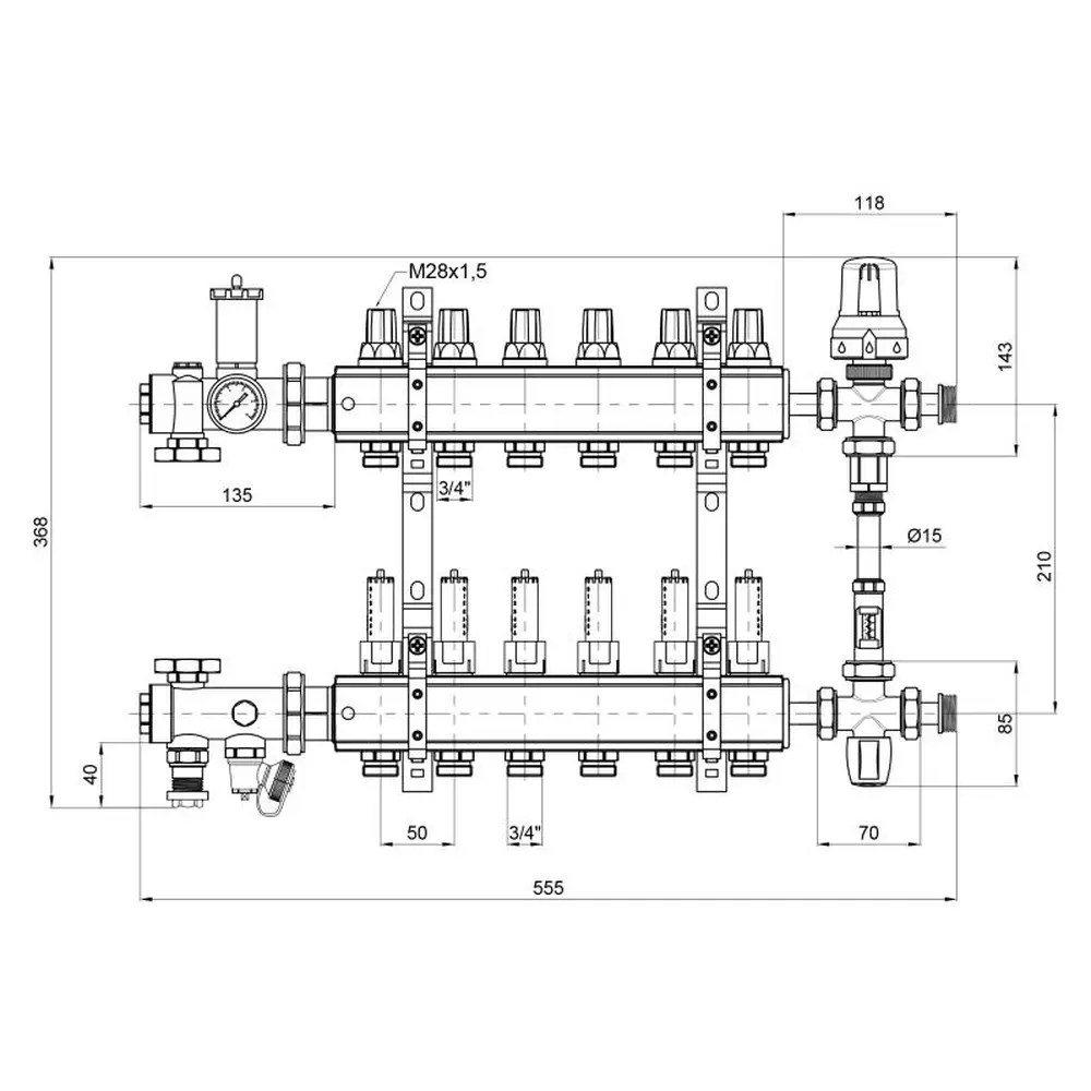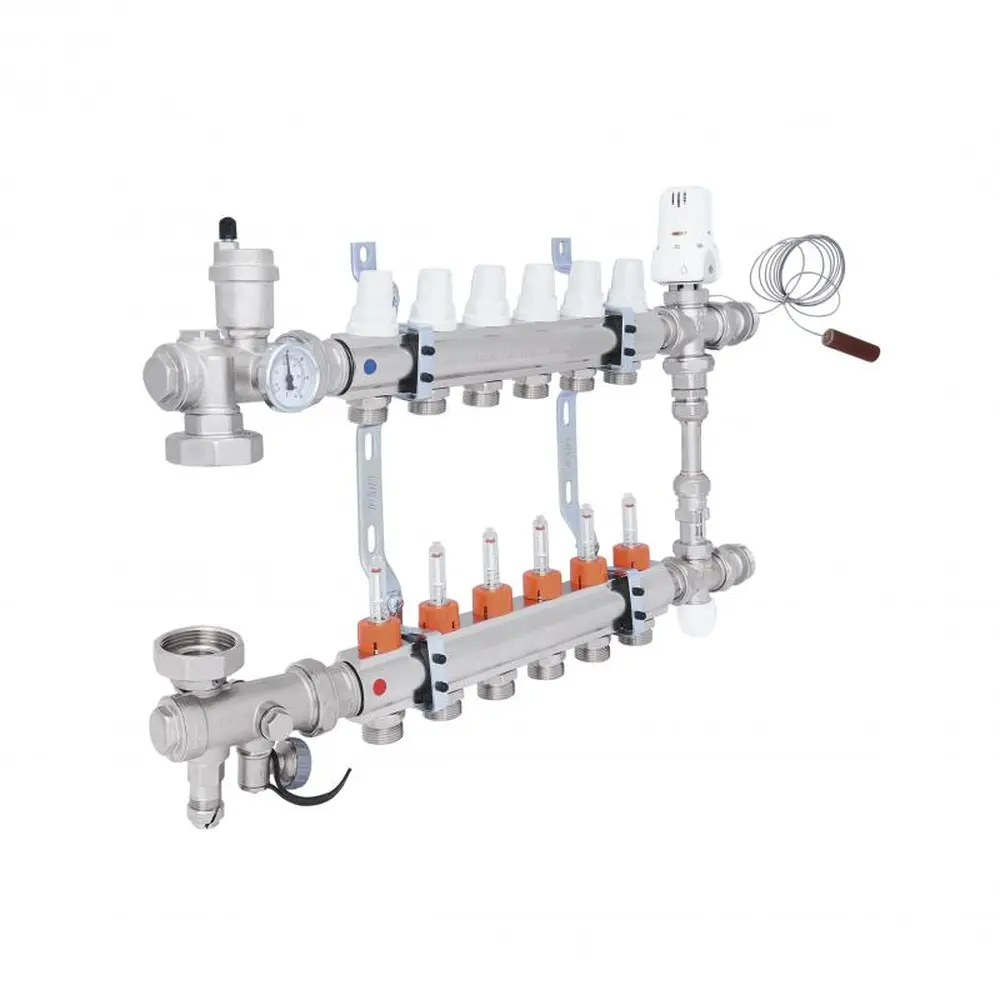 Колекторна група призначена для розподілу теплової енергії в системі "тепла підлога". Дана установка застосовується в системах опалення підлоги, підключених до високотемпературного котла. Колекторна група дозволяє розподіляти первинний теплоносій при високій температурі у вторинному контурі із заданою температурою. Теплоносій надходить з первинного контуру, де температура вища, щоб забезпечити правильну роботу системи теплої підлоги.