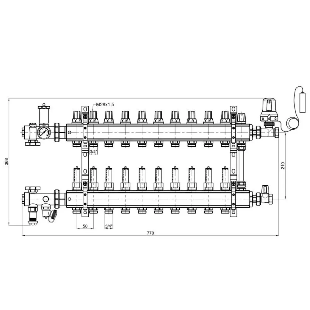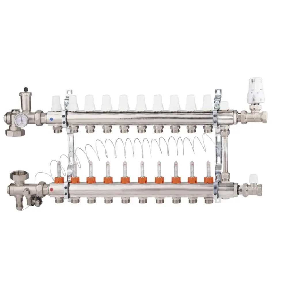Колекторні групи в зборі виробництва ICMA Арт. A2K013 призначені для розподілу теплоносія в системі опалення теплої підлоги, і допомагають поліпшити управління опаленням в окремих контурах системи "теплої підлоги". Колекторна група поставляється в комплекті з усіма необхідними аксесуарами, які потрібно для монтажу, заповнення та управління низькотемпературної системою опалення підлоги. Колекторна група має десять контурів.