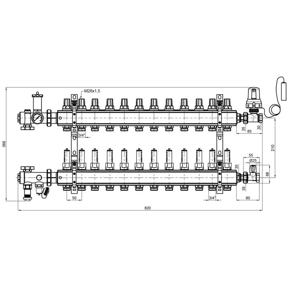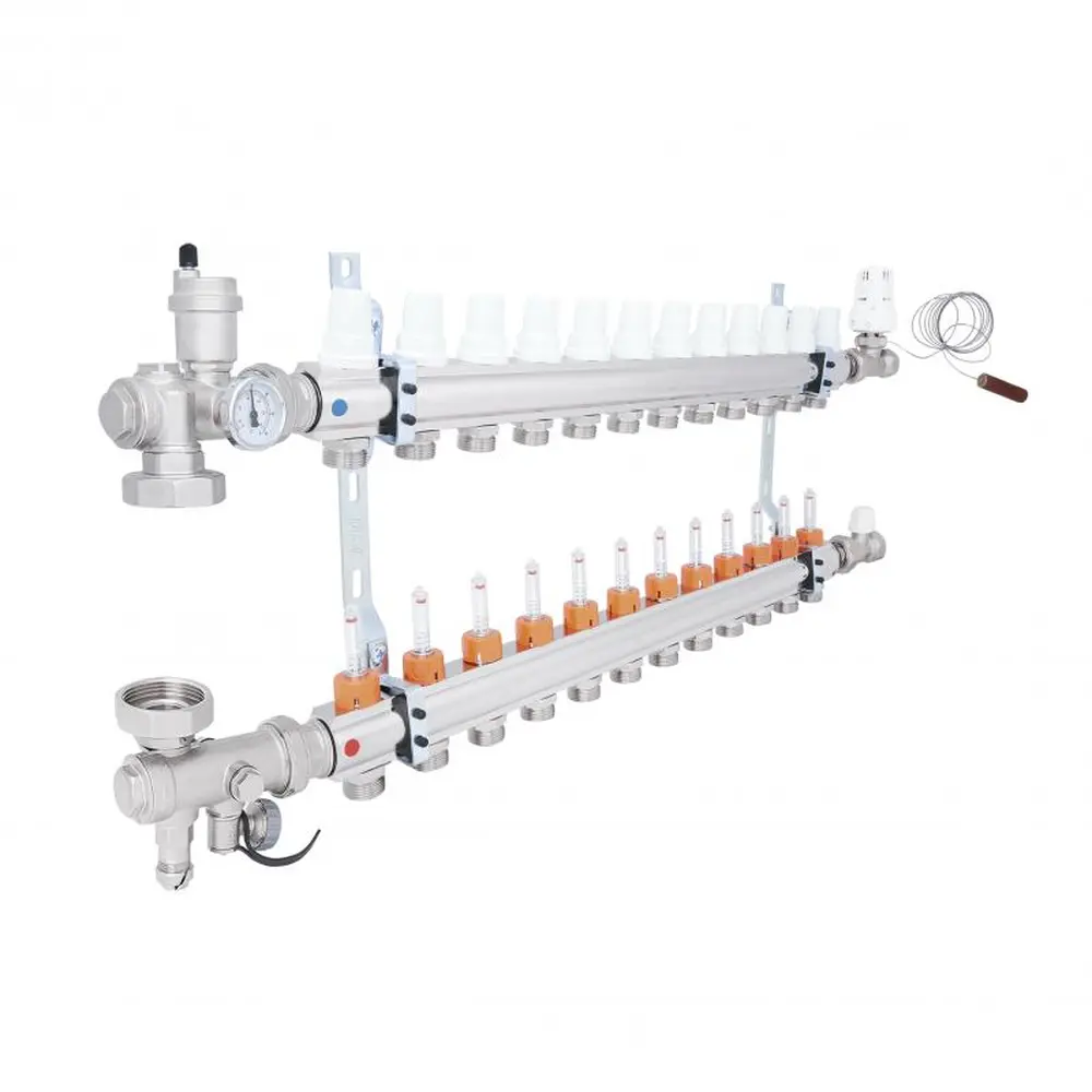 Колекторна група в зборі ICMA Арт. A2K013 призначена для розподілу теплоносія в системі опалення теплої підлоги, має 12 виходів і допомагає поліпшити управління опаленням в окремих контурах системи опалення підлоги. Колектор забезпечує просту і точне регулювання витрати теплоносія в одиничному контурі всієї системи «Тепла підлога», і при необхідності забезпечують повне перекриття окремих контурів системи.