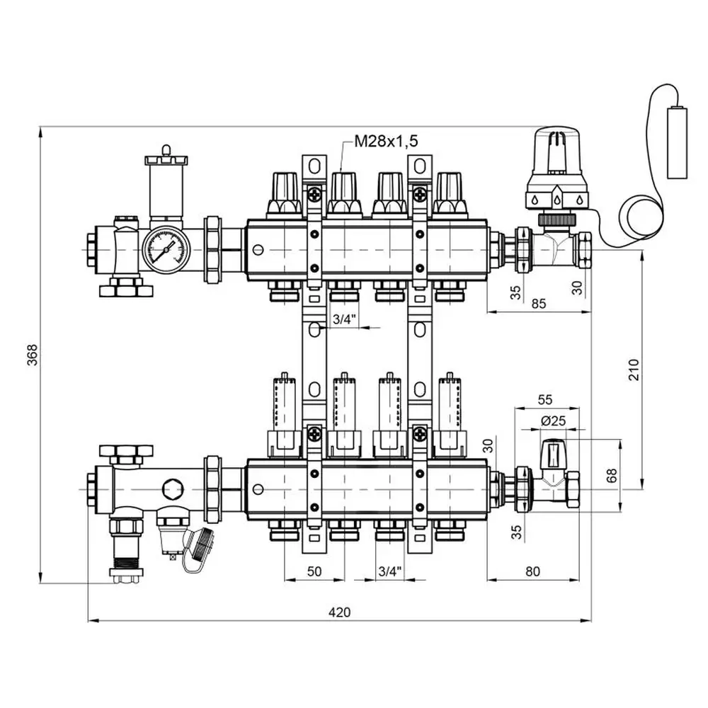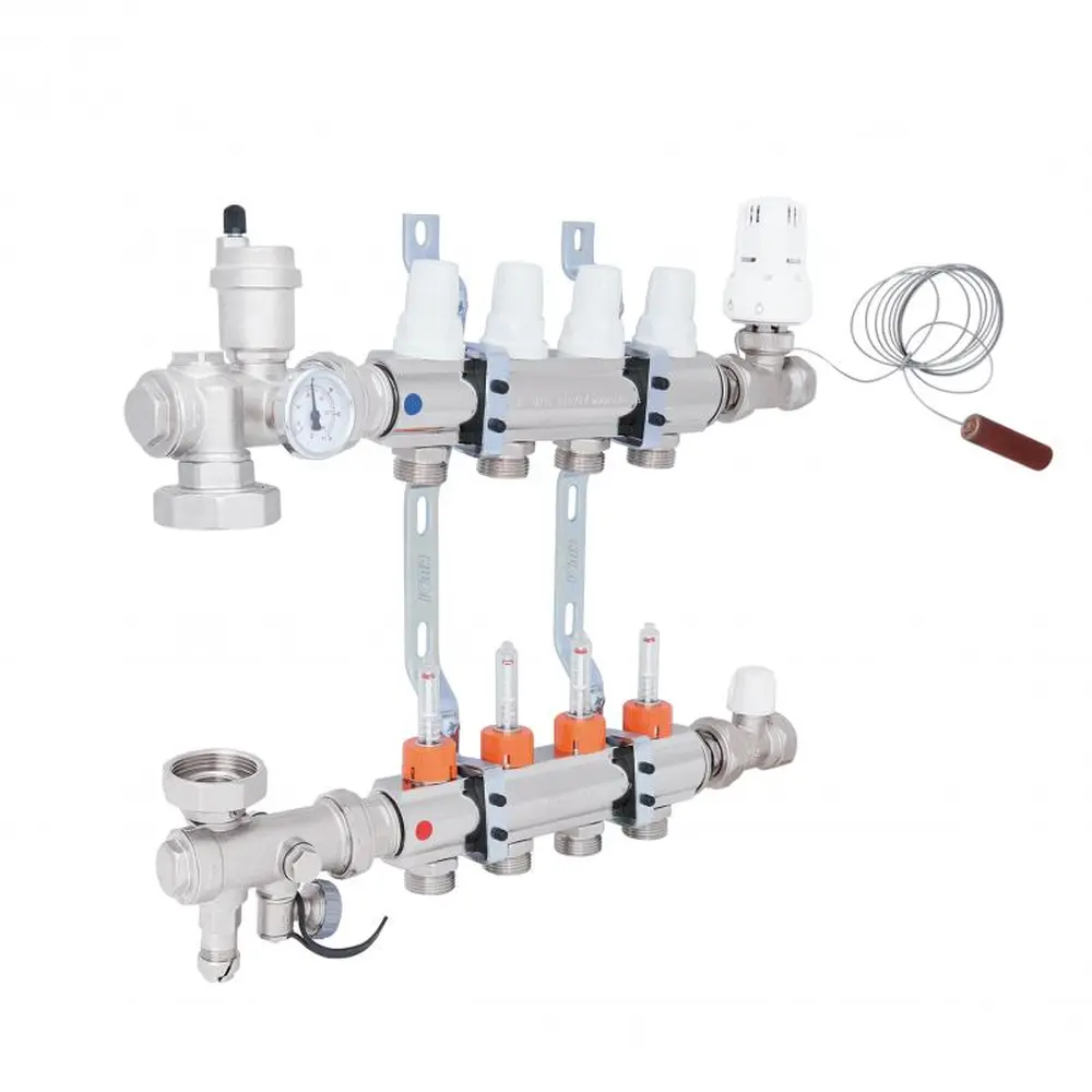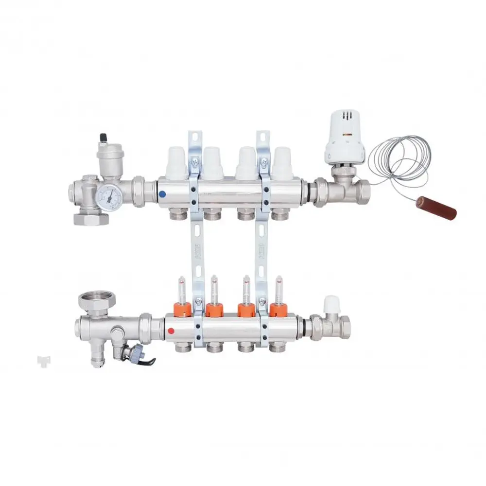 Колекторна група в зборі ICMA Арт. A2K013 призначена для розподілу теплоносія в системі опалення теплої підлоги, має чотири виходи і допомагає поліпшити управління опаленням в окремих контурах системи опалення підлоги. Колектор забезпечує просту і точне регулювання витрати теплоносія в одиничному контурі всієї системи «Тепла підлога», і при необхідності забезпечують повне перекриття окремих контурів системи.