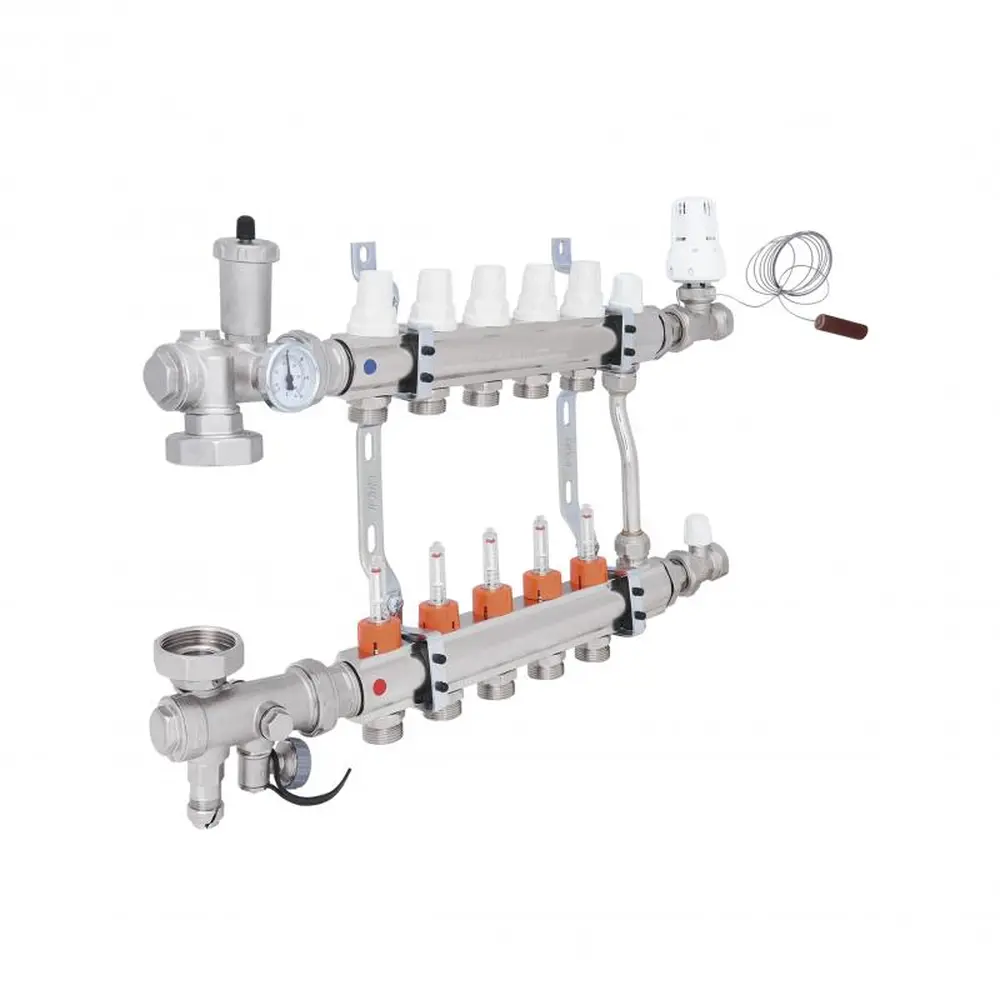 Колекторні групи в зборі виробництва ICMA Арт. A2K013 призначені для розподілу теплоносія в системі опалення теплої підлоги, і допомагають поліпшити управління опаленням в окремих контурах системи "теплої підлоги". Колекторна група поставляється в комплекті з усіма необхідними аксесуарами, які потрібно для монтажу, заповнення та управління низькотемпературної системою опалення підлоги. Колекторна група має п‘ять контурів.