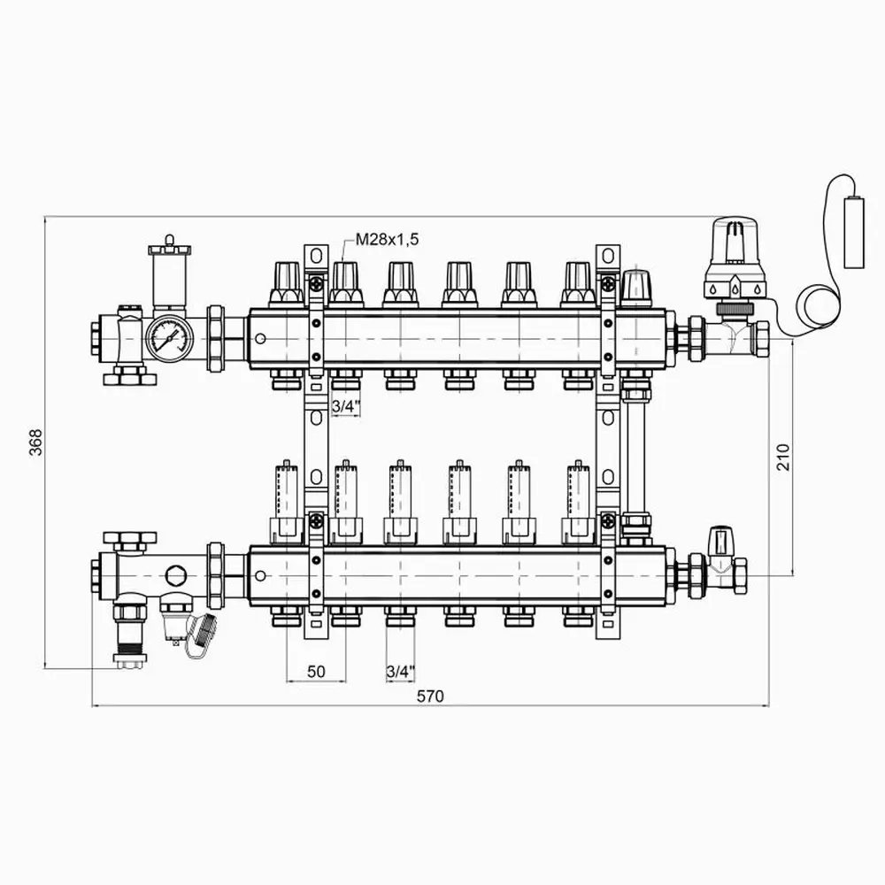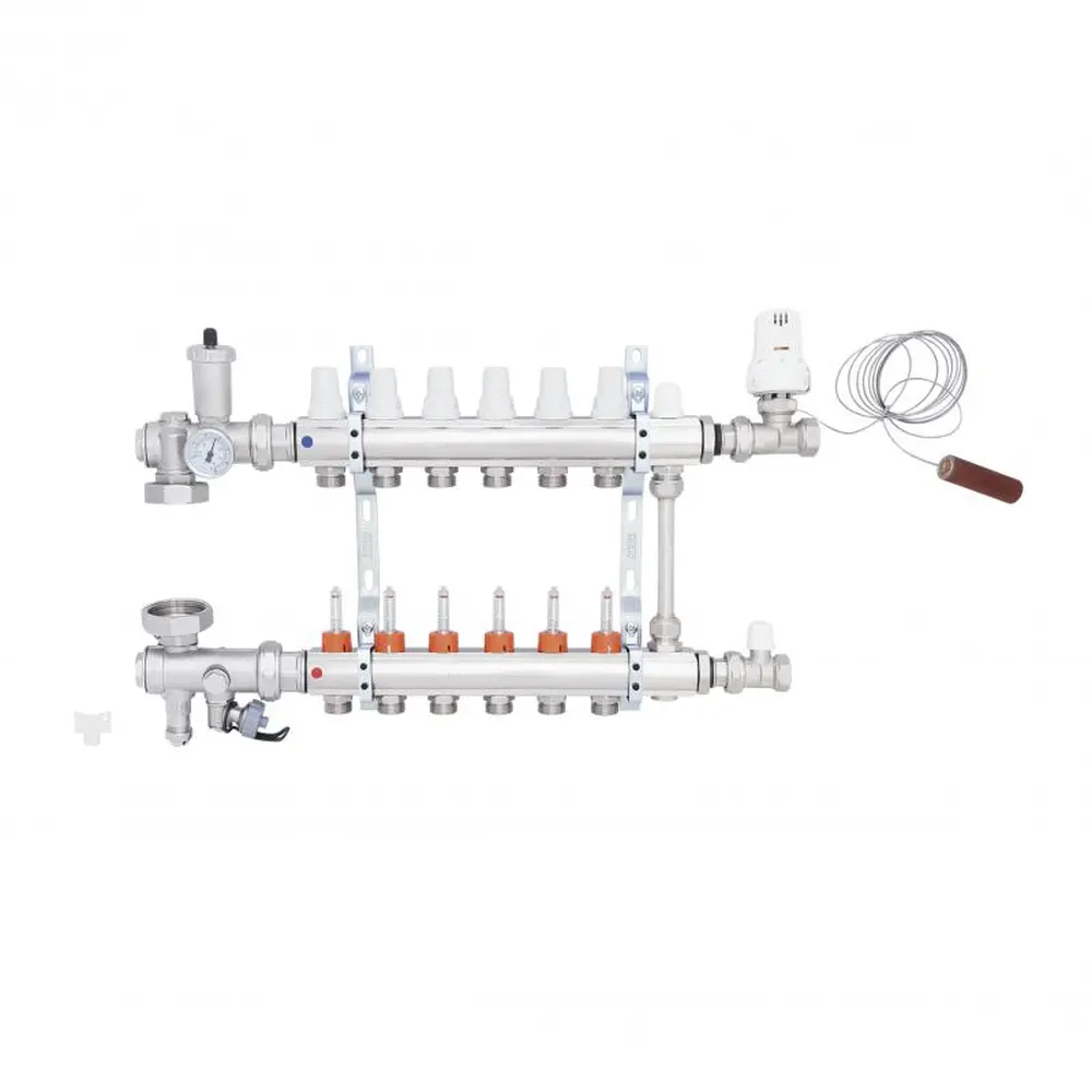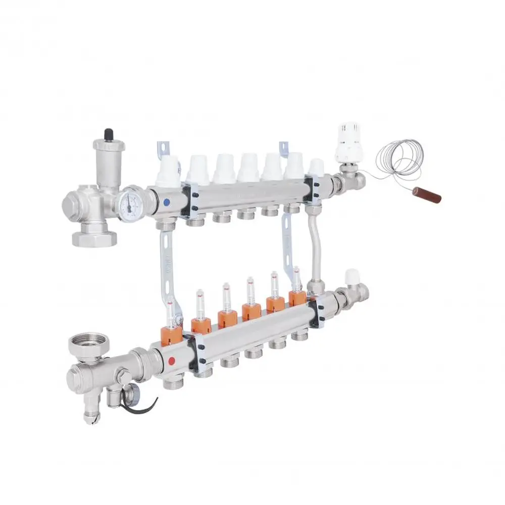 Колекторні групи в зборі виробництва ICMA Арт. A2K013 призначені для розподілу теплоносія в системі опалення теплої підлоги, і допомагають поліпшити управління опаленням в окремих контурах системи "теплої підлоги". Колекторна група поставляється в комплекті з усіма необхідними аксесуарами, які потрібно для монтажу, заповнення та управління низькотемпературної системою опалення підлоги. Колекторна група має шість контурів.