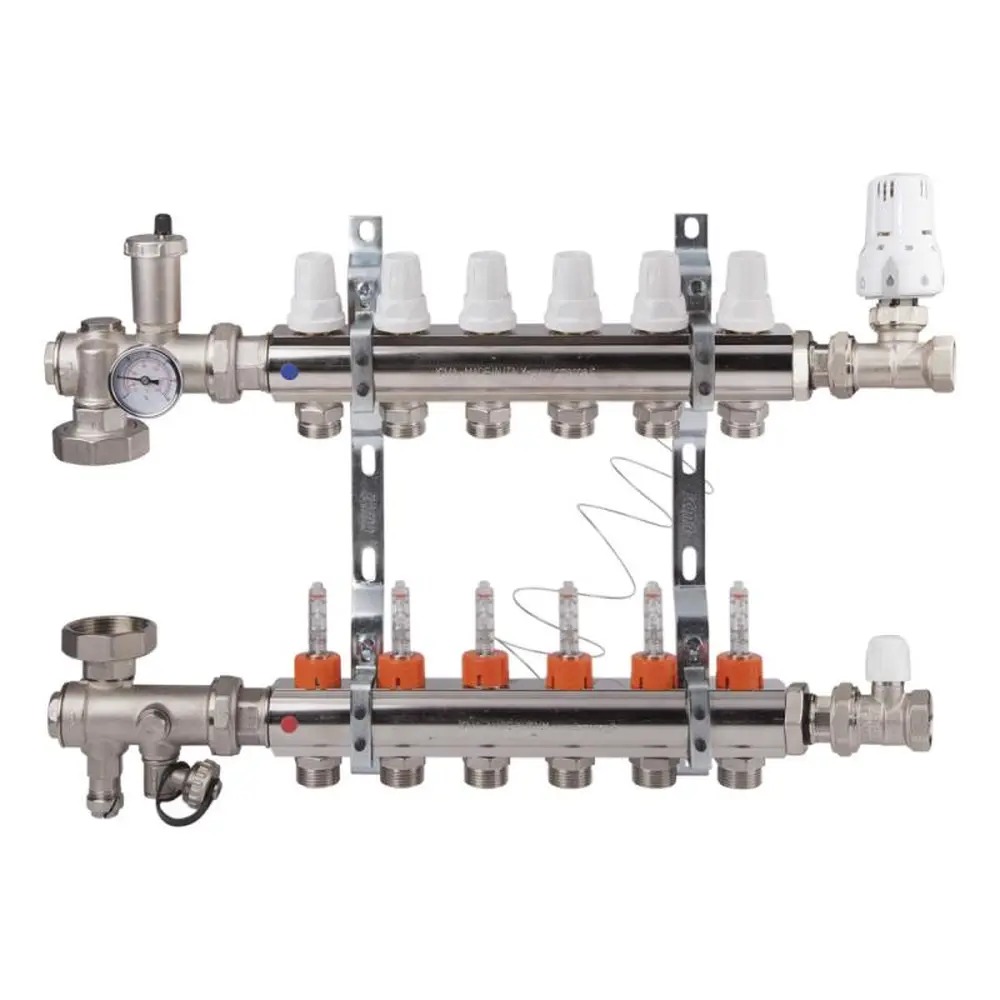 Колекторна група в зборі ICMA Арт. A2K013 призначена для розподілу теплоносія в системі опалення теплої підлоги, має шість виходів і допомагає поліпшити управління опаленням в окремих контурах системи опалення підлоги. Колектор забезпечує просту і точне регулювання витрати теплоносія в одиничному контурі всієї системи «Тепла підлога», і при необхідності забезпечують повне перекриття окремих контурів системи.