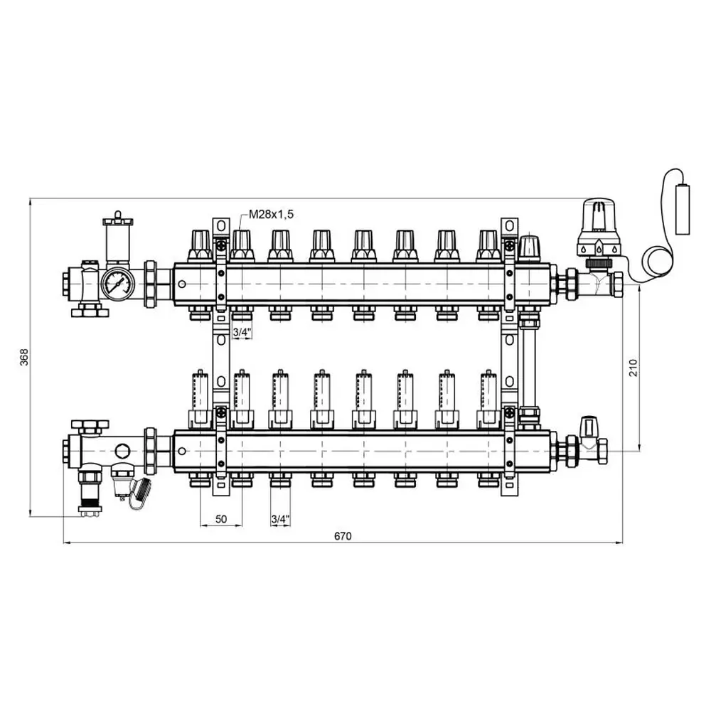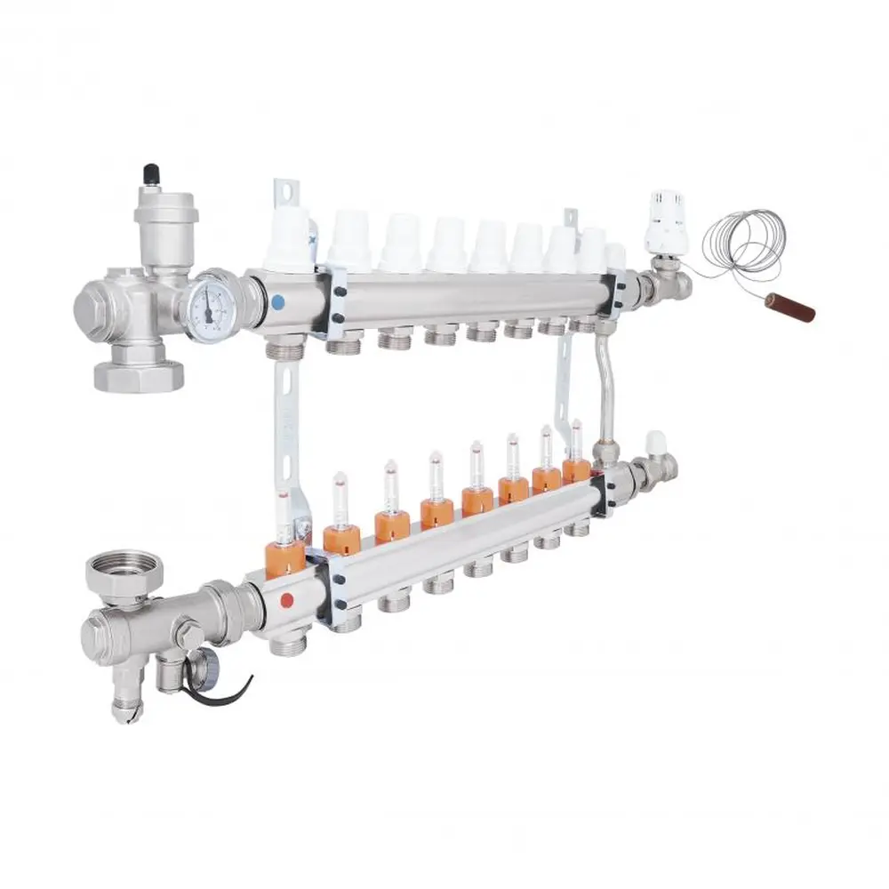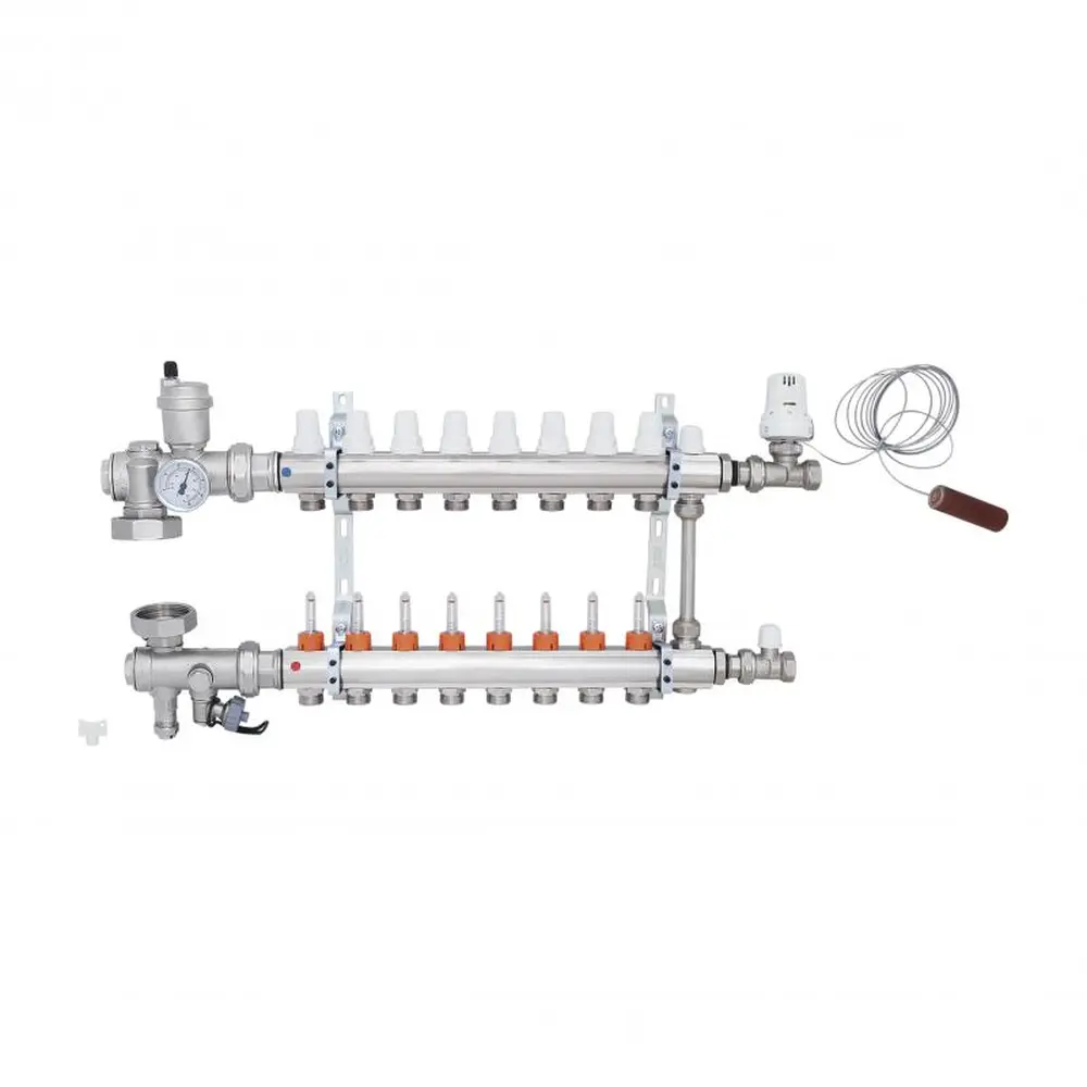 Колекторні групи в зборі виробництва ICMA Арт. A2K013 призначені для розподілу теплоносія в системі опалення теплої підлоги, і допомагають поліпшити управління опаленням в окремих контурах системи "теплої підлоги". Колекторна група поставляється в комплекті з усіма необхідними аксесуарами, які потрібно для монтажу, заповнення та управління низькотемпературної системою опалення підлоги. Колекторна група має вісім контурів.