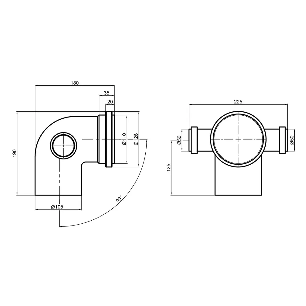 Відвід (коліно) TA Sewage 90° застосовується при монтажі в системі внутрішньої каналізації, має два відводи діаметром 50 мм, які служать для відгалуження труб від основного стояка. Матеріал виробу - високоякісний поліпропілен. Має розтрубну конструкцію, що полегшує і спрощує монтаж каналізації.