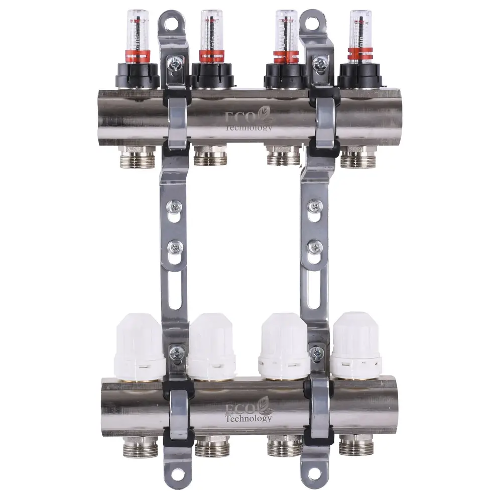 Колектор з вимірювачем витрат, регуляторами та кріпленням ECO 001D 1"x4